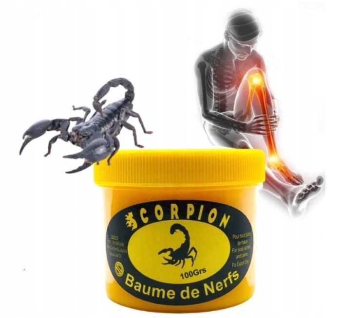 Цей бальзам містить справжній екстракт отрути скорпіона, відомий своїми болезаспокійливими властивостями. Ідеально підходить для людей, які страждають від м'язової втоми, ревматизму або болю в попереку. Також можна застосовувати при мігрені.