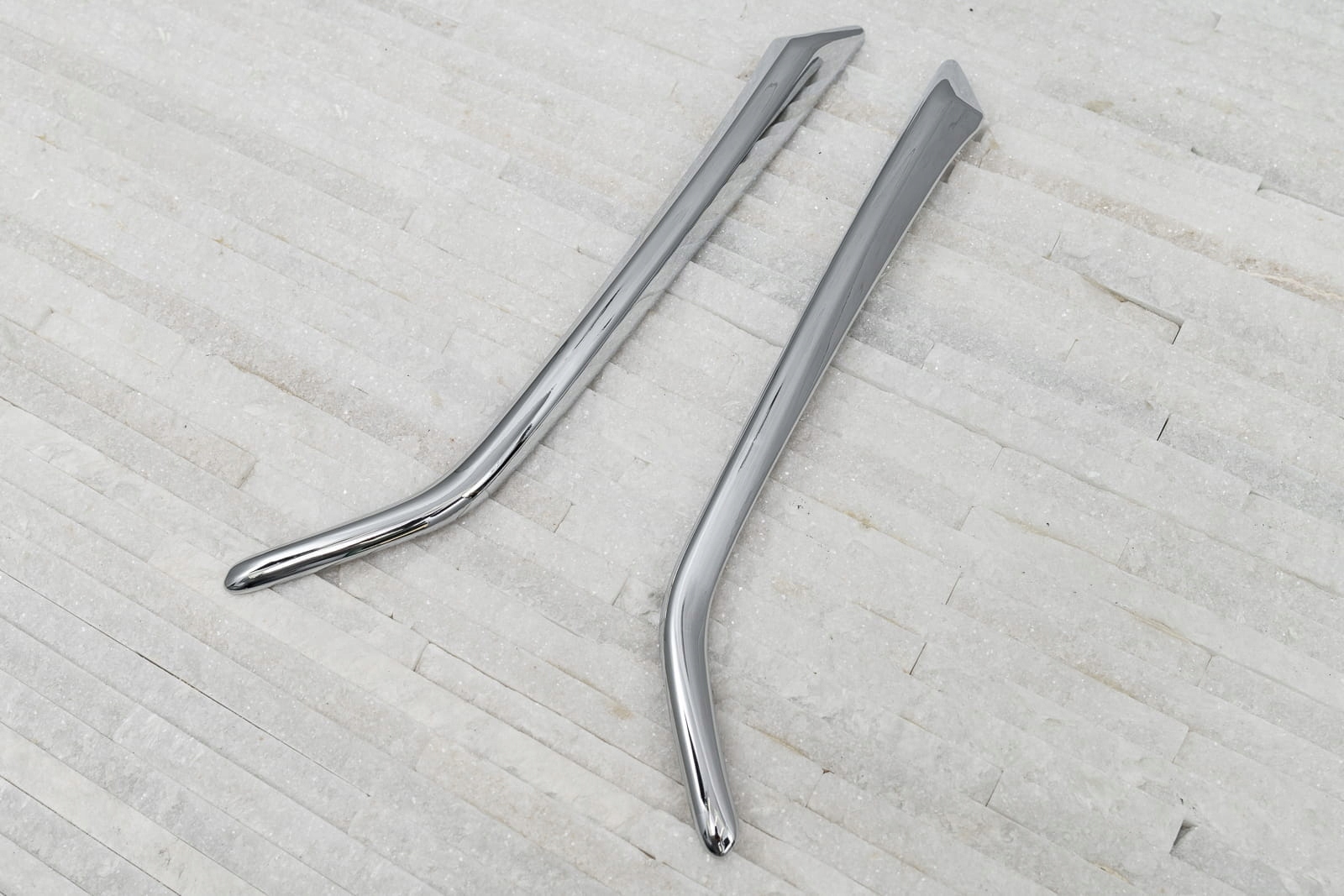 Стильні смужки підкреслюють форму галогенів, витягуючи їх декоративний характер. Поєднання дзеркального блиску хромованої поверхні з динамічною різкою лінією накладки - це особливості, які роблять смужки ідеально з іншими елементами обробки Mazda.