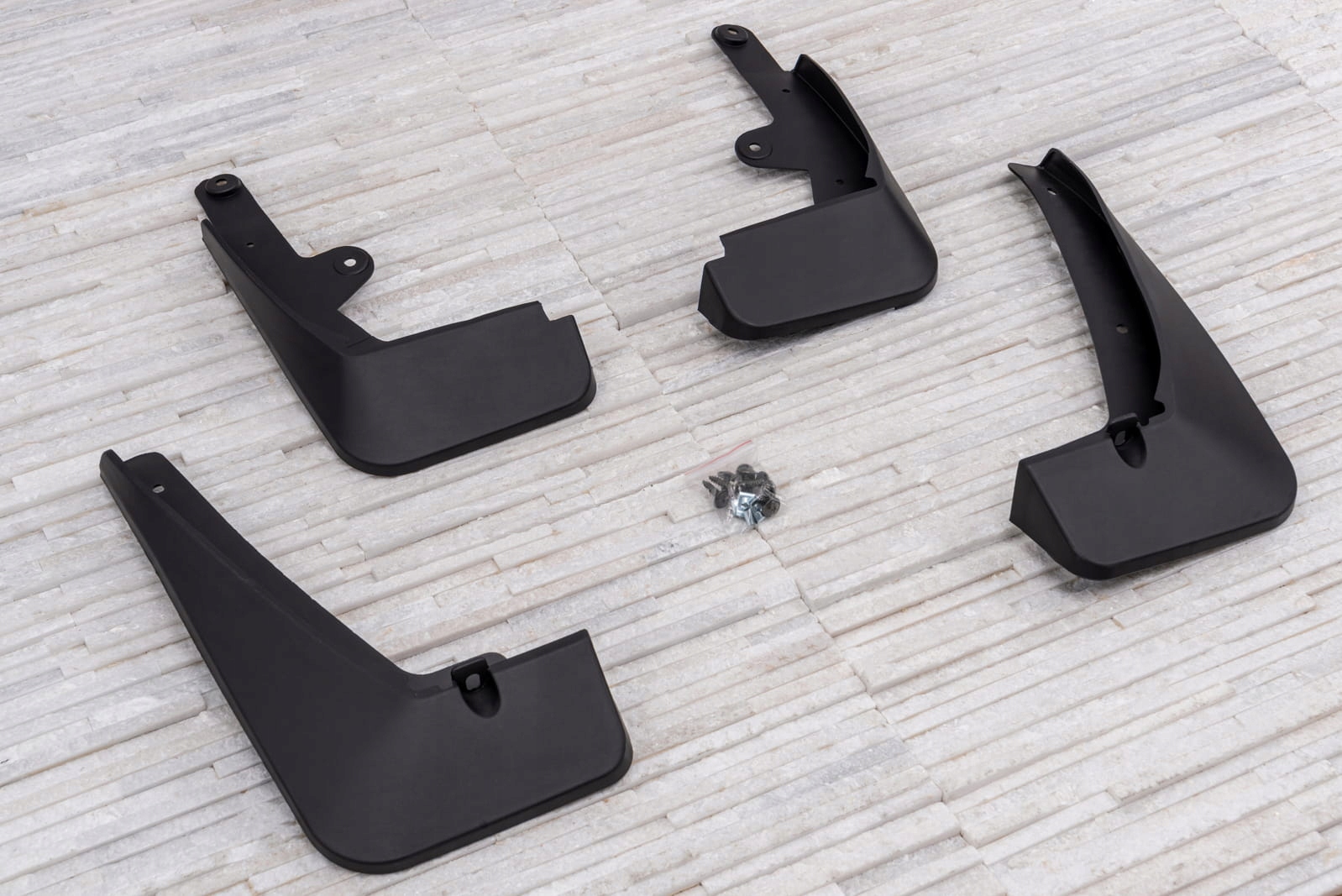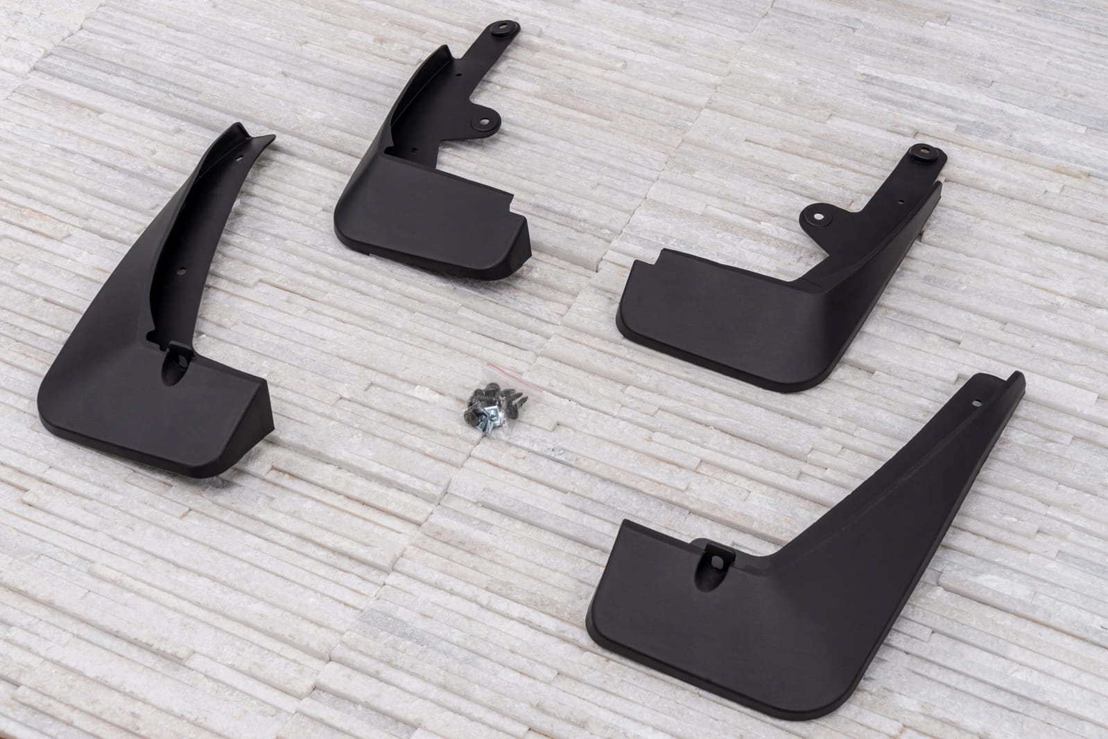 У набір входить набір із чотирьох бризговиків та елементів кріплення. Виріб встановлено на заводські місця, без додаткових доробок. Ми рекомендуємо установку в професійній майстерні.