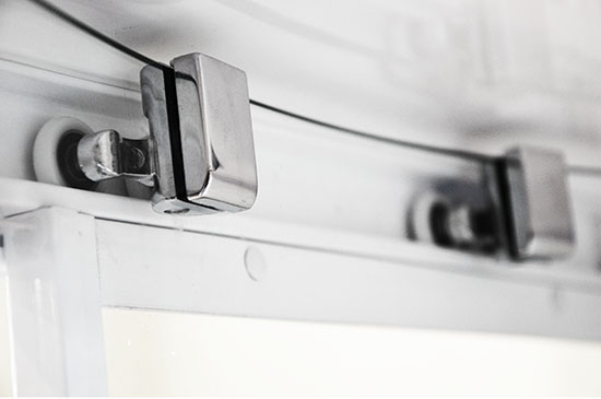 Всі ролики, встановлені в душовій кабіні, виготовлені з хромованої латуні. Вони забезпечують дуже тривалий термін служби та дуже хорошу якість виготовлення. Завдяки ролику двері кабіни рухаються плавно і без заїдань. На кінцях рейок є гальмо, яке забезпечує автоматичне ковзання дверей.