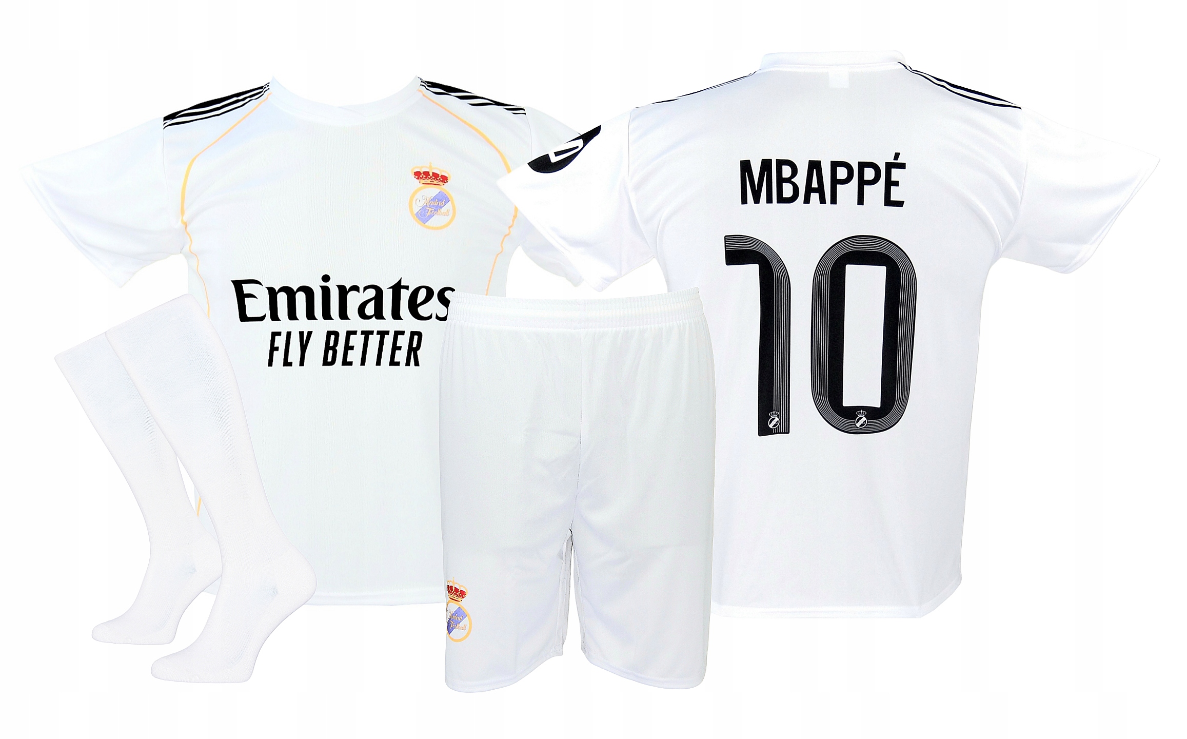 Mbappe Real Football Outfit T -сорочка, шорти + білі гайки 128