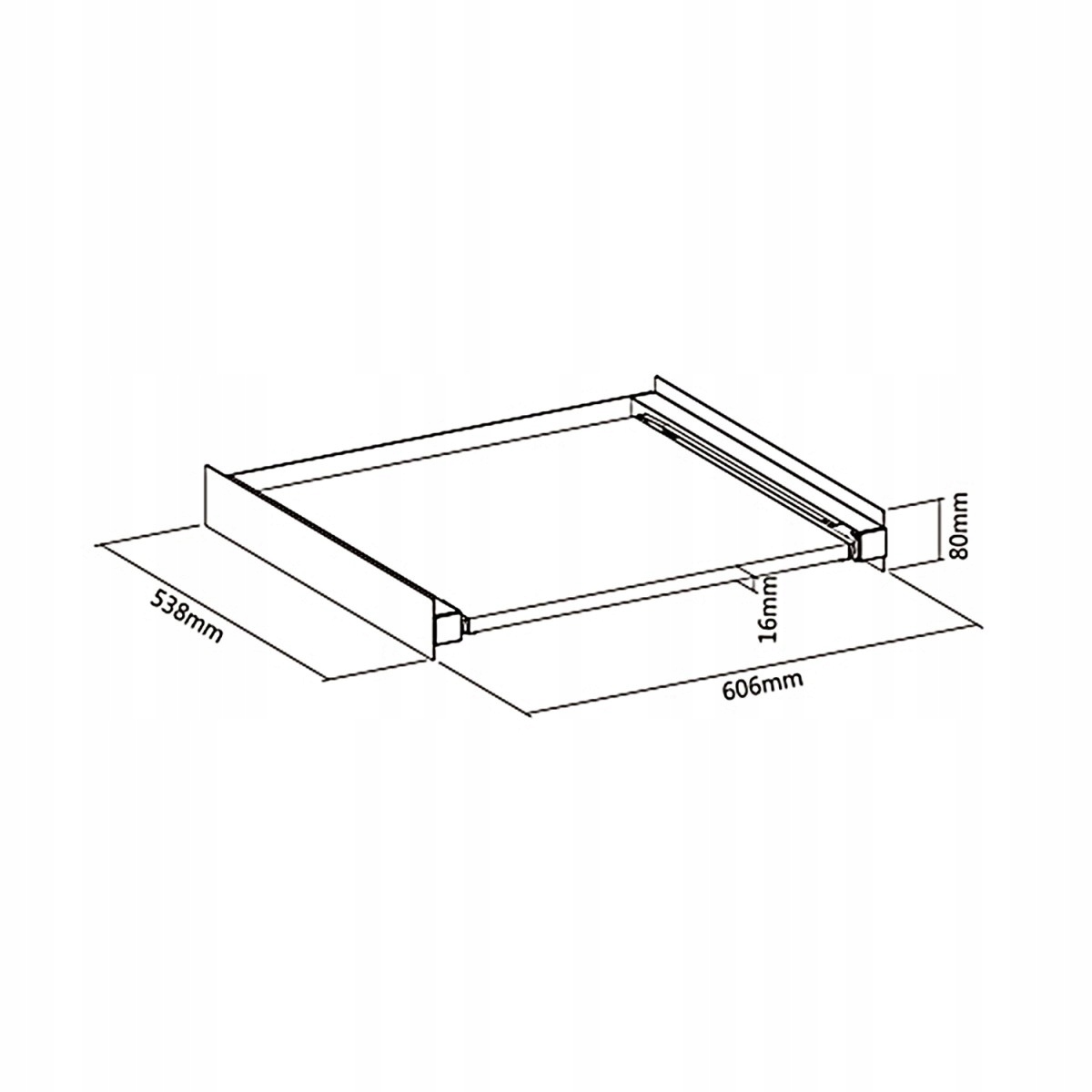 Універсальний роз'єм для пральних і сушильних машин, розмір 60х53 см. Роз'єм сумісний з пристроями більшості виробників, наприклад, Bosch, LG, Samsung, AEG, Siemens, Beko та багатьох інших. Якісна алюмінієва конструкція забезпечує стійку основу для пристроїв вагою до 60 кг. Завдяки зручній висувній полиці ви можете класти або виймати білизну, не нахиляючись. Максимальне навантаження на полицю становить 8 кг, що дозволяє розмістити кошик для білизни або зберігати миючі засоби.