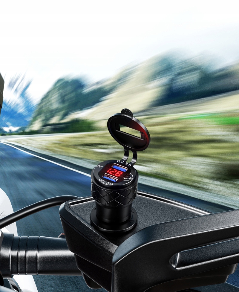 Мотоцикл зарядний пристрій 2x QC3.0 + Volttomierz: