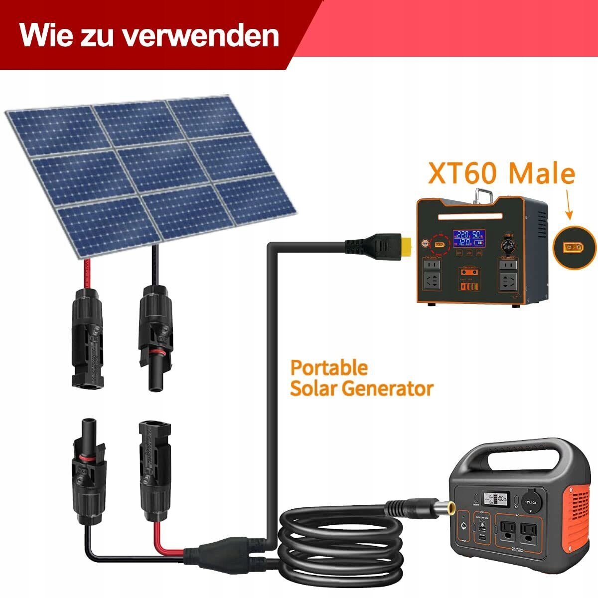 Кабель для сонячної панелі: забезпечує зручне рішення для всіх сонячних панелей із роз’ємами сонячної панелі, композитний кабель, що відповідає роз’єму сонячної панелі панель до кабелю XT60*1, кабель постійного струму 5,5x2,1 мм*1, кабель постійного струму 8 мм*1, сумісний кабель з роз’ємом Anderson*1