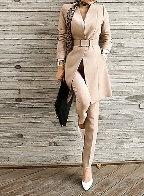 MD бежевий елегантний комплект піджак + штани | XL