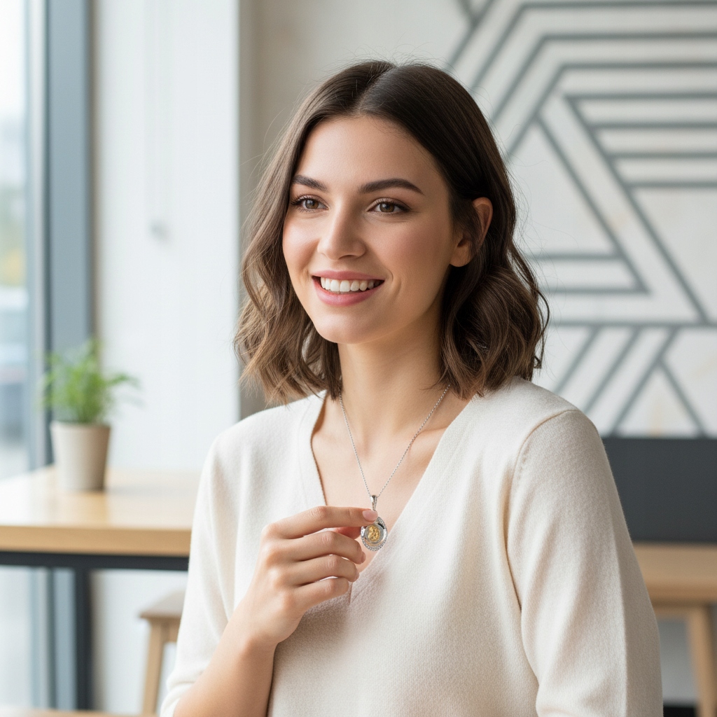 Позолочена смуга на медальйоні підкреслює його духовне значення, поєднуючи естетику з глибоким релігійним посилом. Це не лише гарна прикраса, але, перш за все, вияв віри та відданості, які ви можете носити біля свого серця щодня.