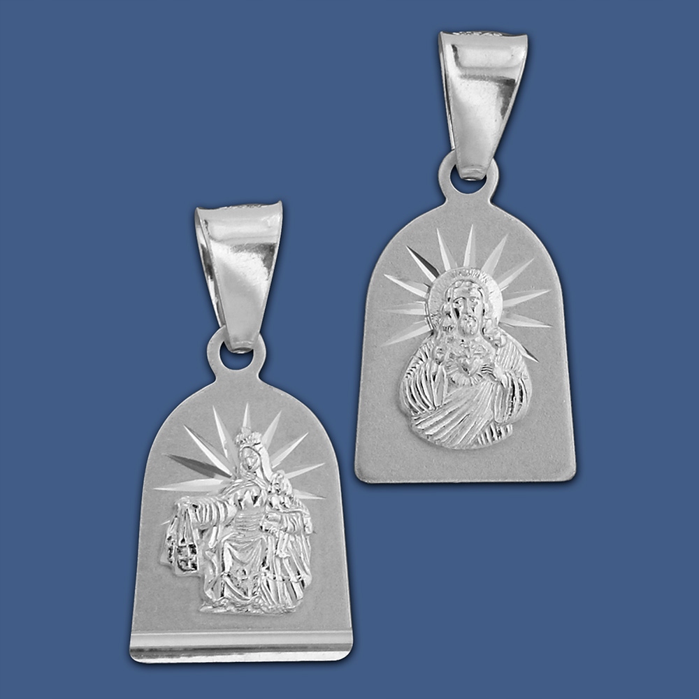 Медальйон зі срібла найвищої проби, прикрашений діамантовою обробкою, що надає йому неповторного блиску. З одного боку на ньому зображена Мати Божа Шкапулярна, символ опіки та заступництва Марії, а з іншого – Серце Господа Ісуса, вираження Його безмежної любові та милосердя.