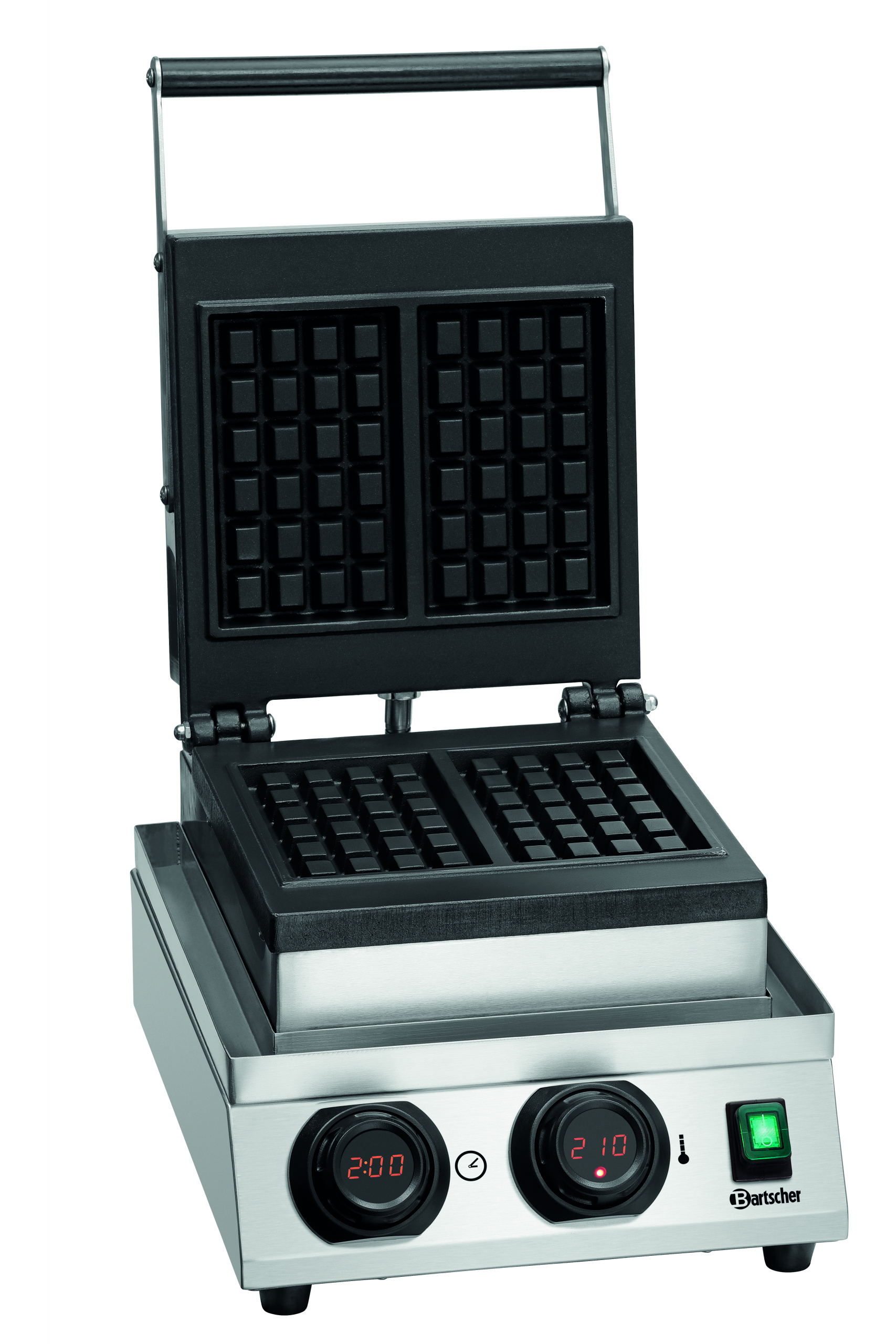Вафельниця Bartscher - сучасний апарат, призначений для випікання вафель в ресторанах, кафе і кондитерських. Корпус знержавіючої сталі та алюмінієві робочі пластини з антипригарним покриттям забезпечують тривалу та безпроблемну роботу. Апарат має сертифікат CE та відповідає вимогам санепідемстанції.