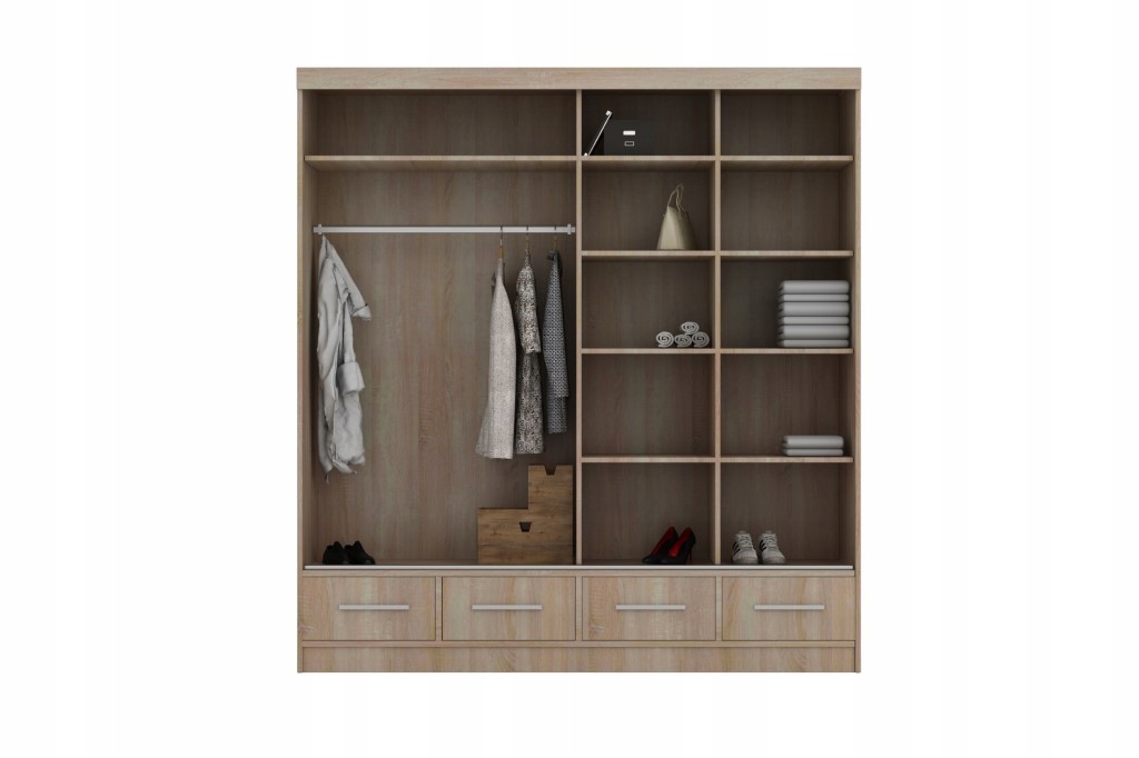 Сучасна, практична та функціональна дводверна шафа-купе з чотирма ящиками, яку можна використовувати в будь-якому інтер'єрі.