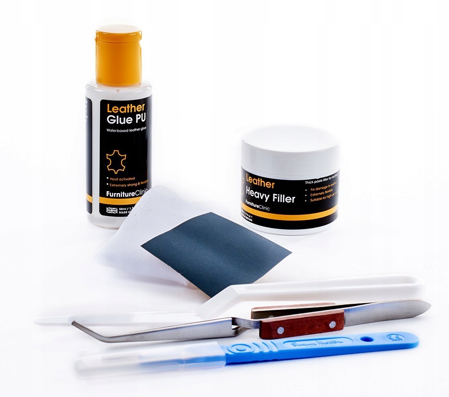 - Leather Glue50 ml- клей на водній основі для шкіри, швидко сохне і не тріскається. Продукт забезпечує ефективне відновлення дірок і розривів. Після нанесення клею на поверхню шкіри вона залишається м’якою та гнучкою, тому ви можете точно приклеїти латку для створення міцного та довговічного ремонту. Клей можна використовувати як на великих, так і на невеликих поверхнях. Підходить для всіх типів шкіри.
