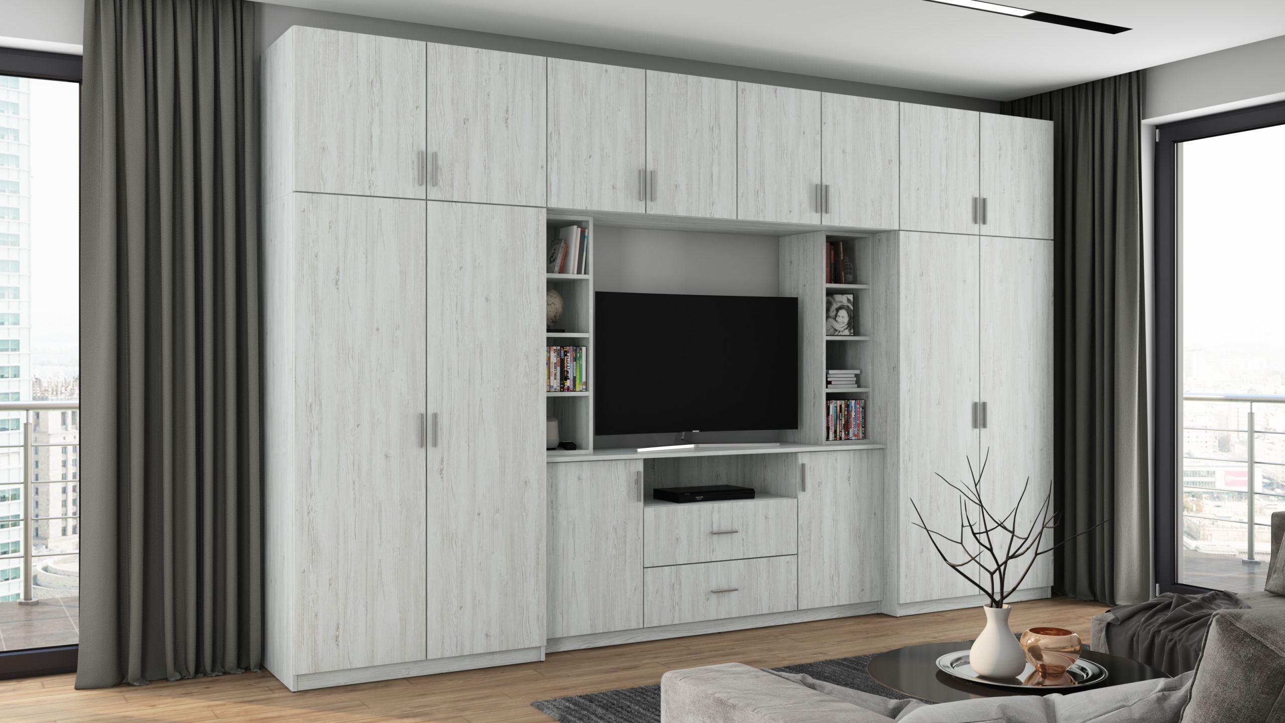 ⏺ Стінка складається з окремих сегментів, які разом утворюють повний набір кімнати. При необхідності сегменти (не всі) можуть стояти окремо!