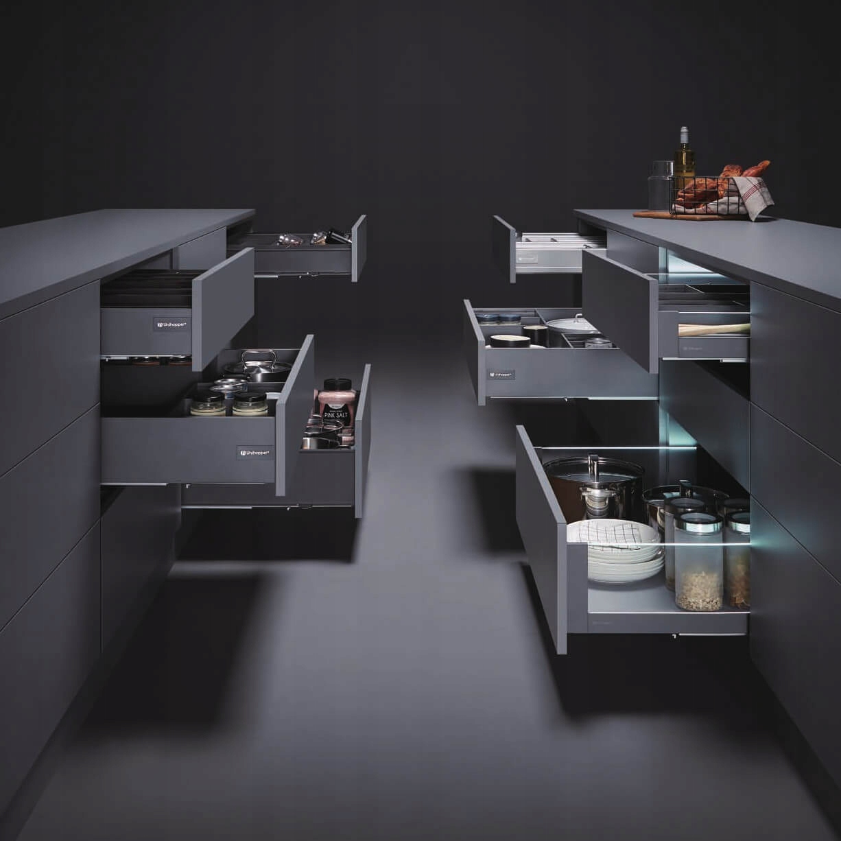 Нова система ящиків із тонкими стінками також забезпечує більше місця всередині ящика. Це дає змогу впорядковувати більше речей і легко знаходити те, що вам потрібно. Крім того, була вдосконалена система регулювання в кожній площині, що дозволяє легко налаштовувати шухляду відповідно до індивідуальних уподобань користувача. Установка ящика проста і не вимагає фрезерування, що робить процес установки швидким і зручним.