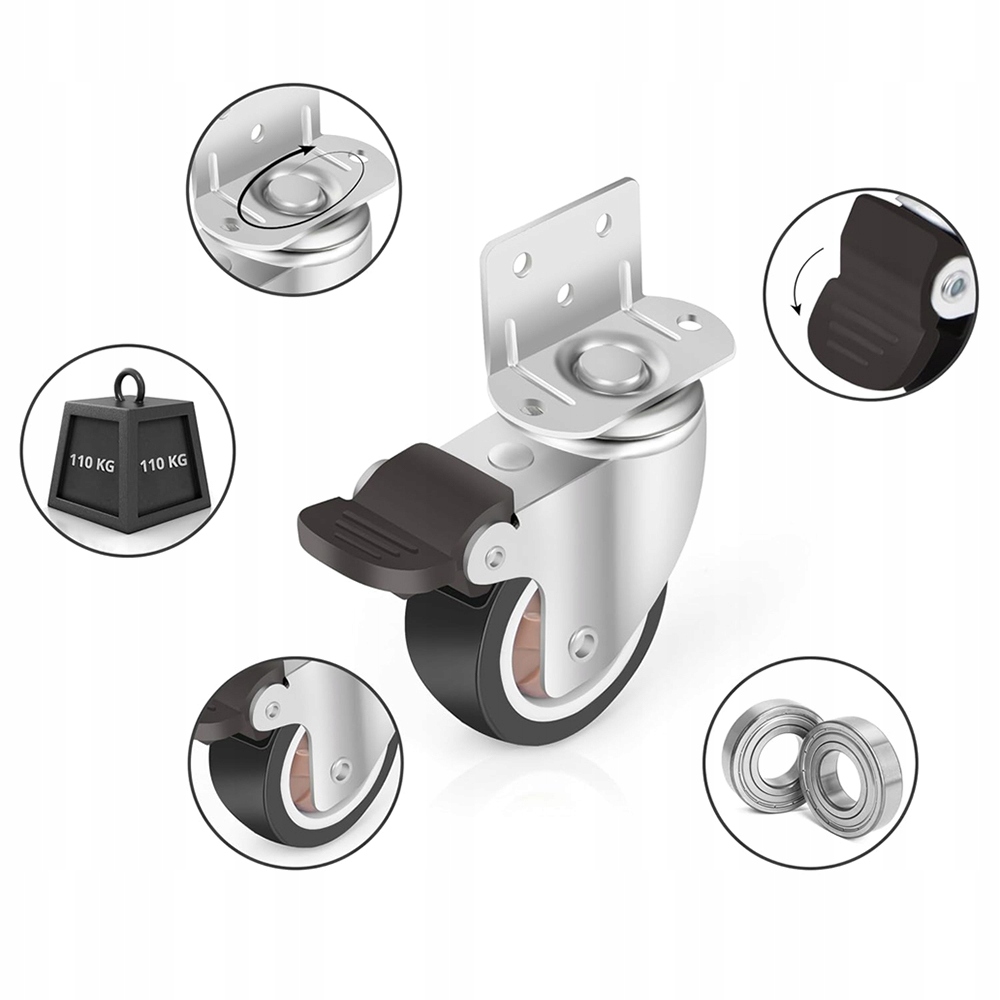 З загальною вантажопідйомністю 110 кг ці коліщатка призначені для безпечного встановлення на невеликих шафах, столах, дитячих ліжечках та інших легких та середніх меблях.