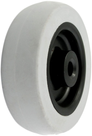 Пластмасово-гумові меблеві колеса мають пластиковий корпус із чорного поліаміду PA та гумові сірі бігові доріжки. Вони характеризуються низьким опором коченню, не пошкоджують і не забруднюють землю. Меблеві колеса та ролики стійкі до багатьох агресивних речовин. Вони можуть працювати в діапазоні температур від -20°C до +60°C. Вони доступні лише з підшипником ковзання.