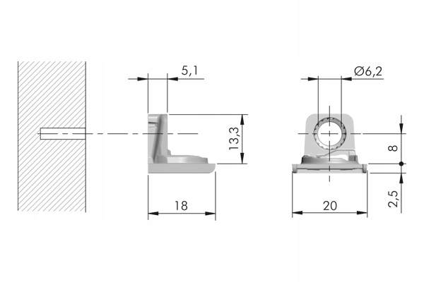 Меблевий роз'єм для полиць PK2 Pro Italiana Ferrament для білого гвинта