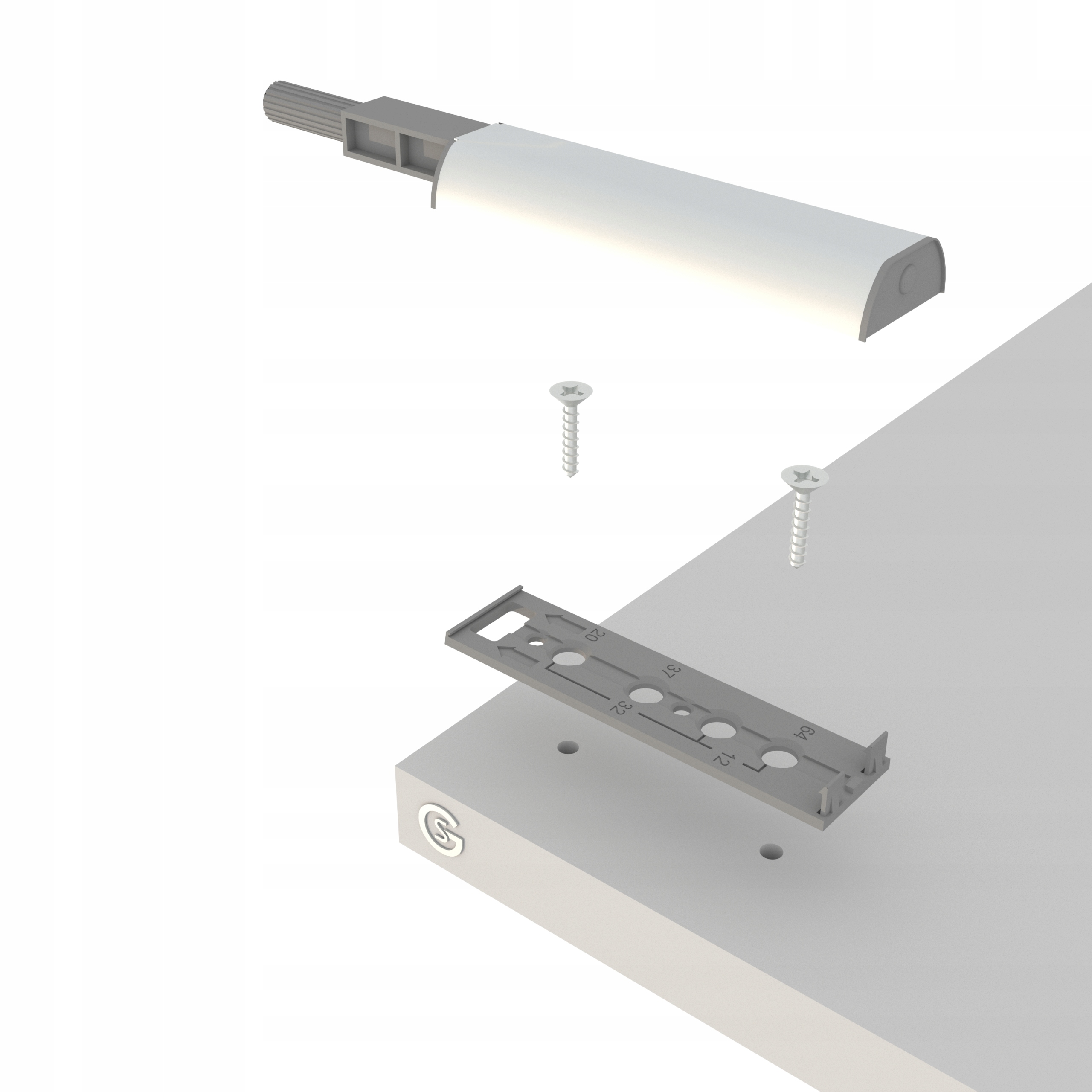 натискання на відкриття призначене для відкриття дефектних шаф. Набір включає 2 гвинти для монтажу в корпус меблів. Рішення популярне в сучасних меблях, де ми не хочемо розміщувати ручки на фронтах. Збірка бампера повинна бути зроблена шляхом накладання плитки до внутрішньої частини меблевого корпусу. Потім ми застосовуємо механізм. Ми запрошуємо вас ознайомитись з іншими моделями бамперів, призначених для роботи та відкритим. У бампера є гумовий кінчик, захищаючи внутрішню частину фронту проти подряпин. Кінець бампера додатково регулюється.