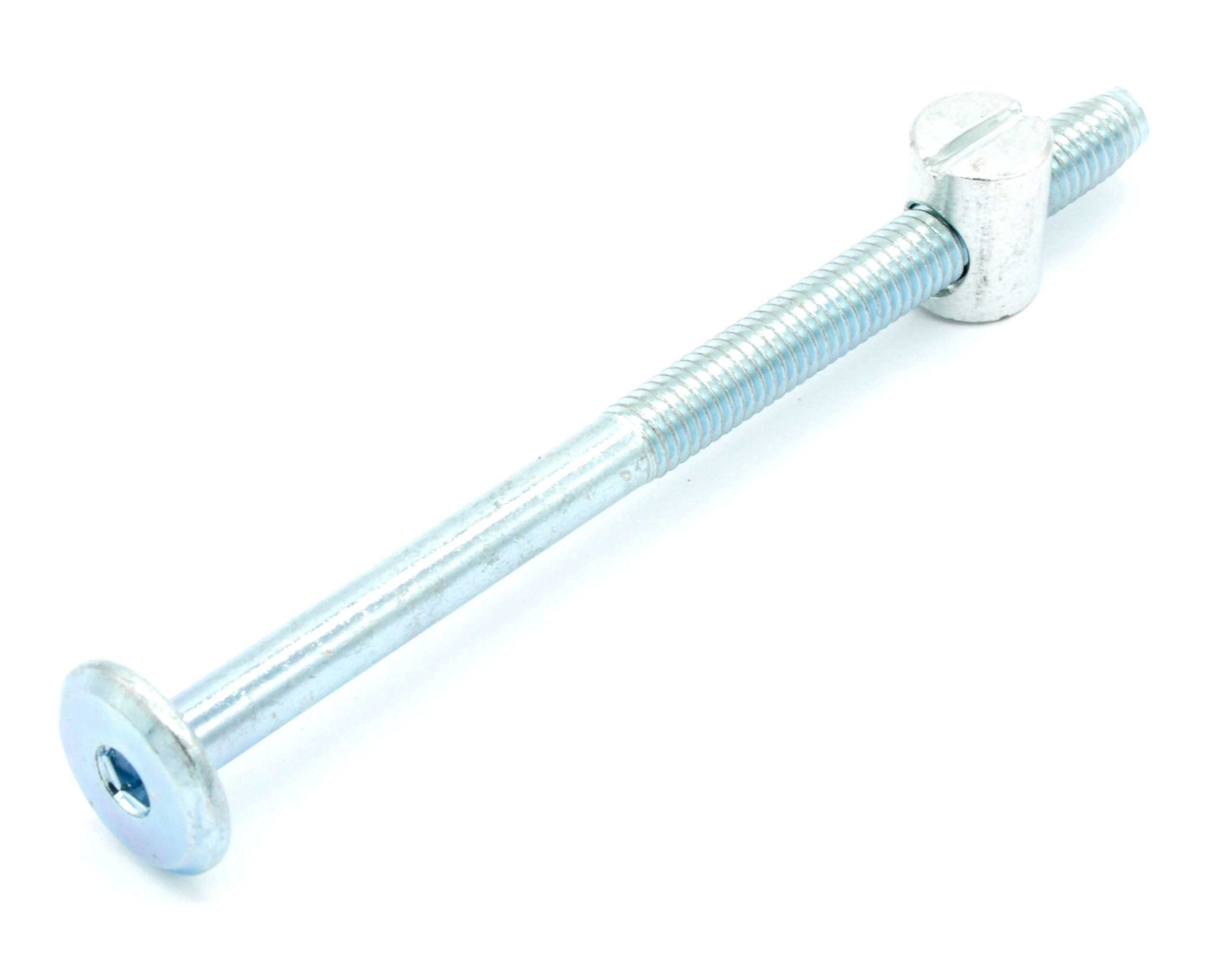 Опис: з'єднувач використовується для загвинчування домашніх і садових меблів. Цей тип роз’єму гарантує високу міцність з’єднання і дозволяє легко монтувати і розбирати. Гвинт M6 виготовлений з білого цинку (так зване срібло), головка гвинта адаптована до шестигранного ключа № 4 (інший термін: HEX 4). Гайка M6x13x10 виготовлена з білого цинку.