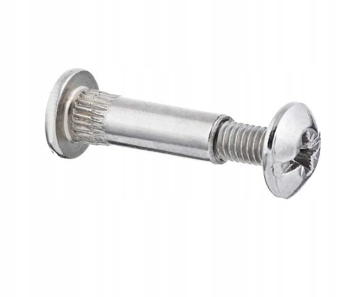 З'єднувачі меблеві використовуються для з'єднання плат розміром 5 мм - різьба М4 - для з'єднань в діапазоні 16 - 27 мм. (наприклад, 2 дошки 16 або 18 мм). З’єднувач виготовлений зі сталі з нікелевим покриттям.