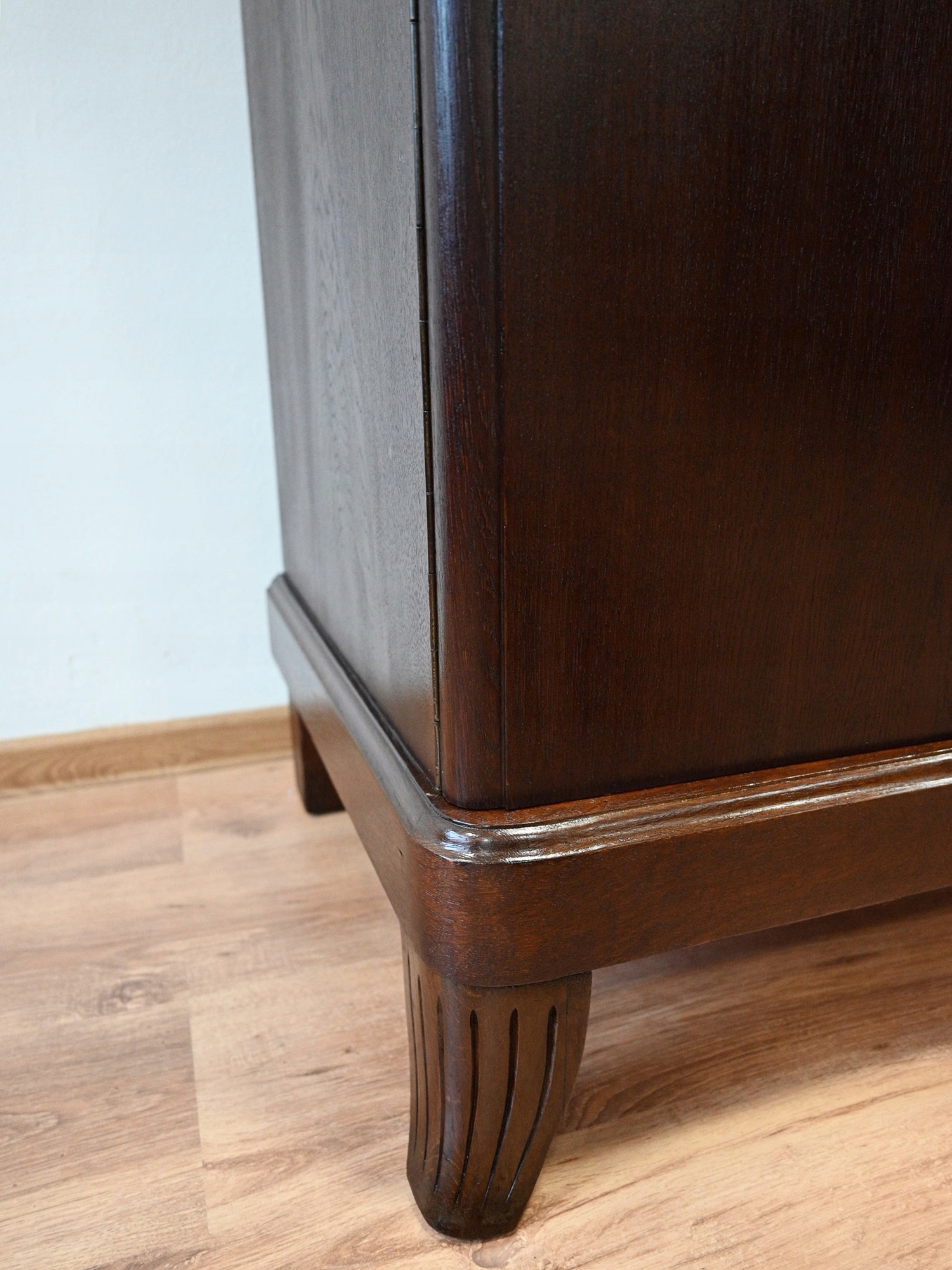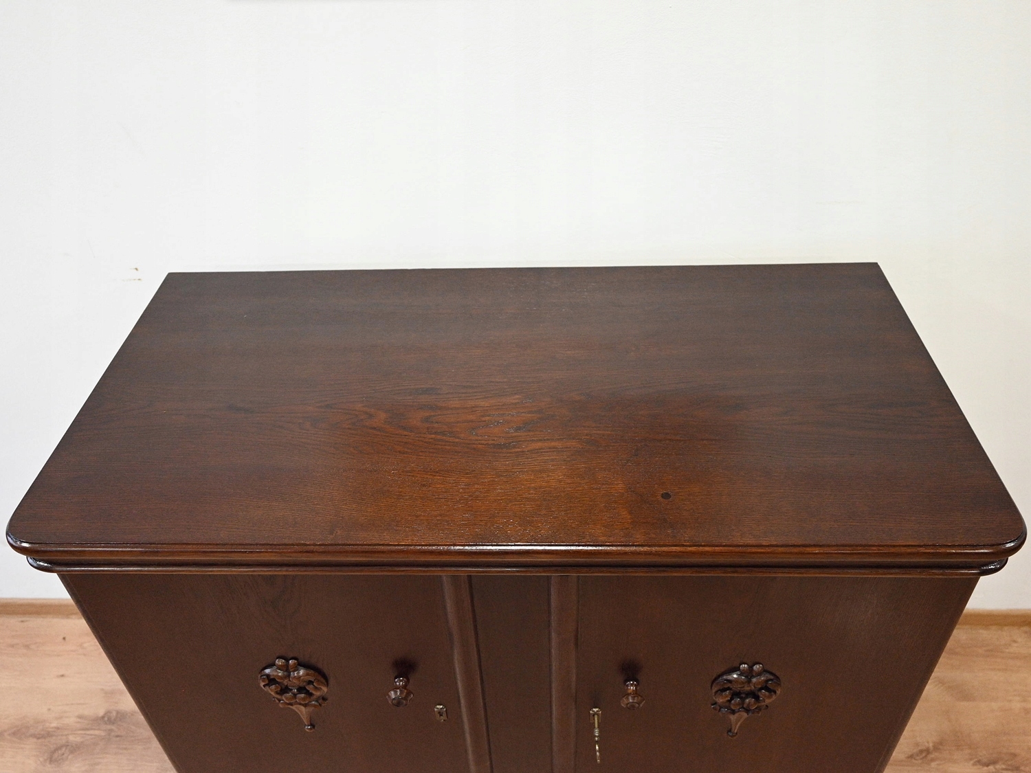 Дуже хороший стан. Меблі готові до використання. Оновлено зовнішні поверхні та інтер’єр меблів. Меблі вже старі, а сліди минулого, які не впливають на їх естетичне сприйняття, є доказом автентичності меблів. Комод можна відразу поставити в квартиру.