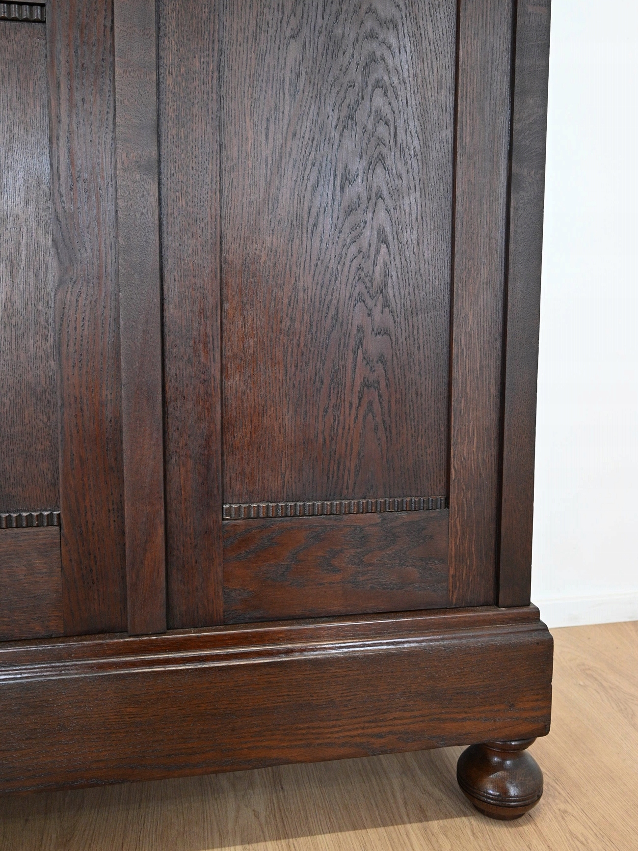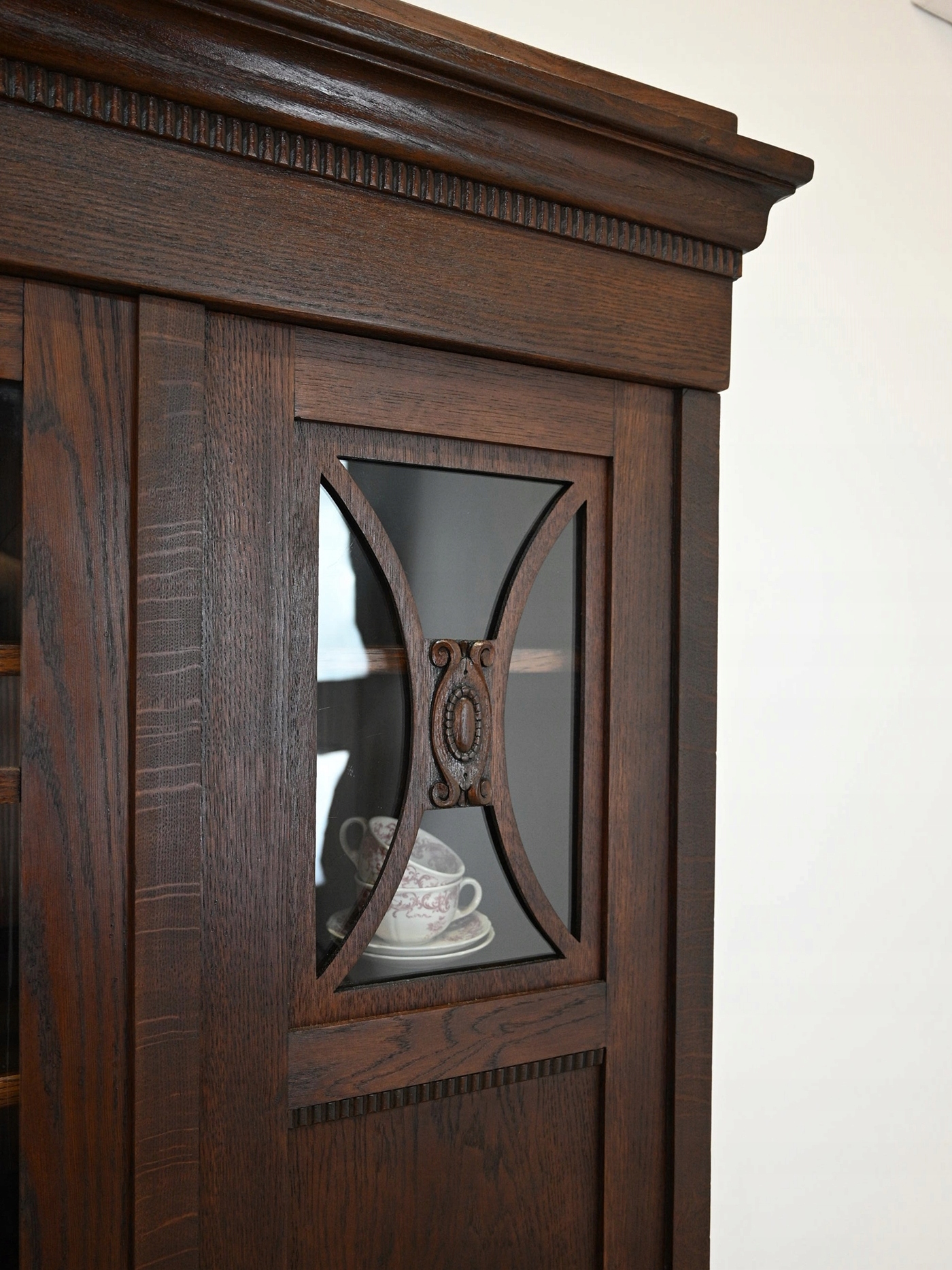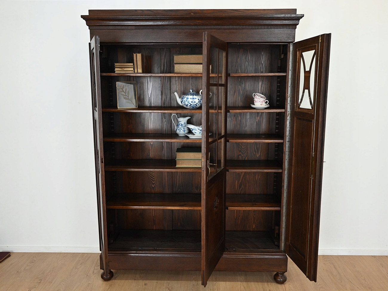 Дуже хороший стан. Меблі готові до використання. Оновлено зовнішні поверхні та інтер’єр меблів. Меблі вже старі, а сліди минулого, які не впливають на їх естетичне сприйняття, є доказом автентичності меблів. Бібліотека може бути заселена в квартиру відразу.