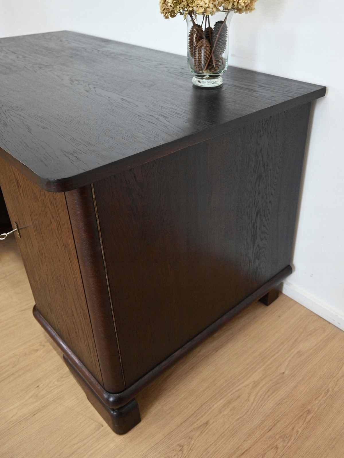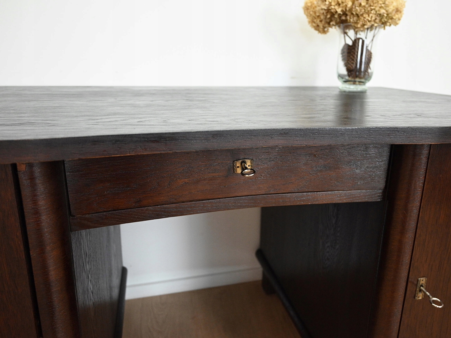 Дуже хороший стан. Меблі готові до використання. Оновлено зовнішні поверхні та інтер’єр меблів. Меблі вже старі, а сліди минулого, які не впливають на їх естетичне сприйняття, є доказом автентичності меблів. Стіл можна відразу поставити в квартиру.