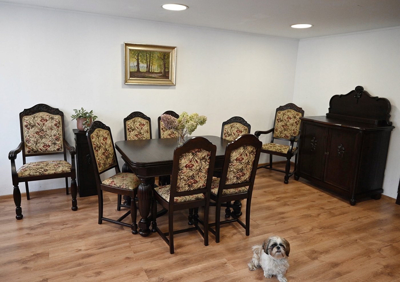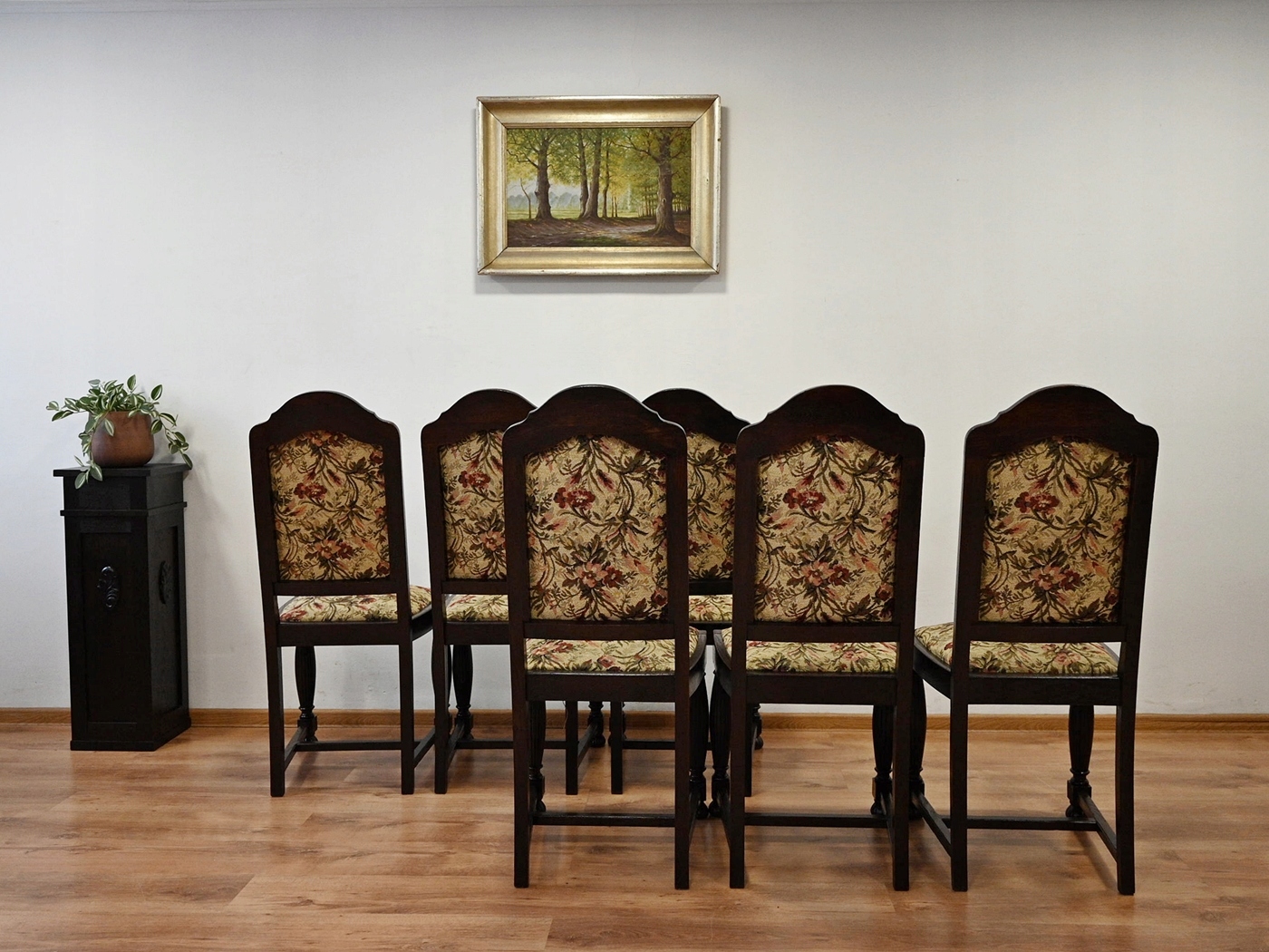 Дуже хороший стан. Меблі, підготовлені до використання. Оновлений. Меблі вже багато років і сліди минулого часу, які не впливають на його естетичний прийом, вони є свідченням справжності меблів. Стільці можна негайно поставити в квартиру.