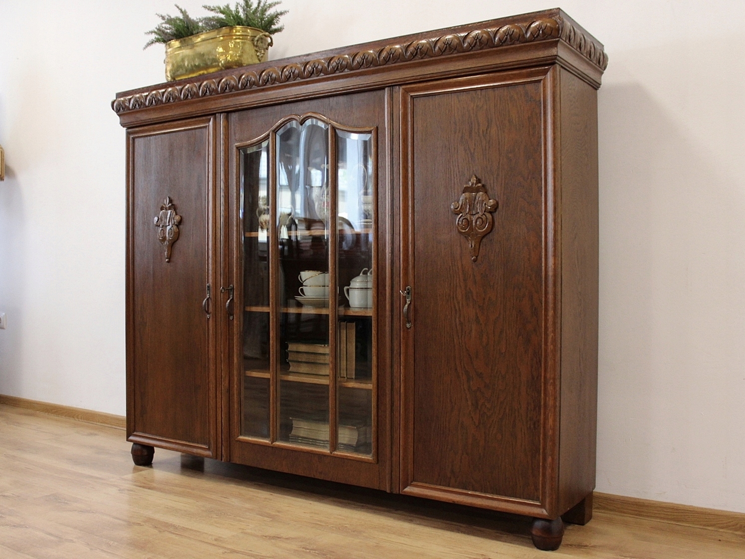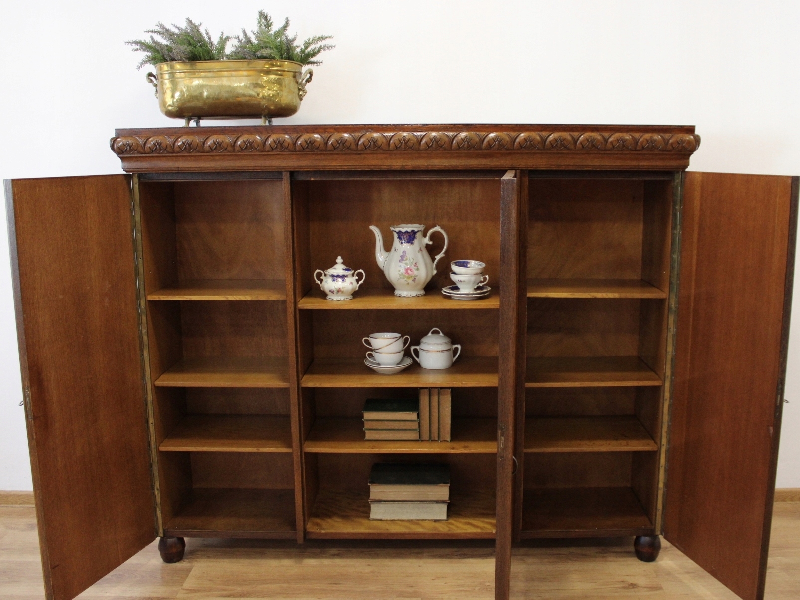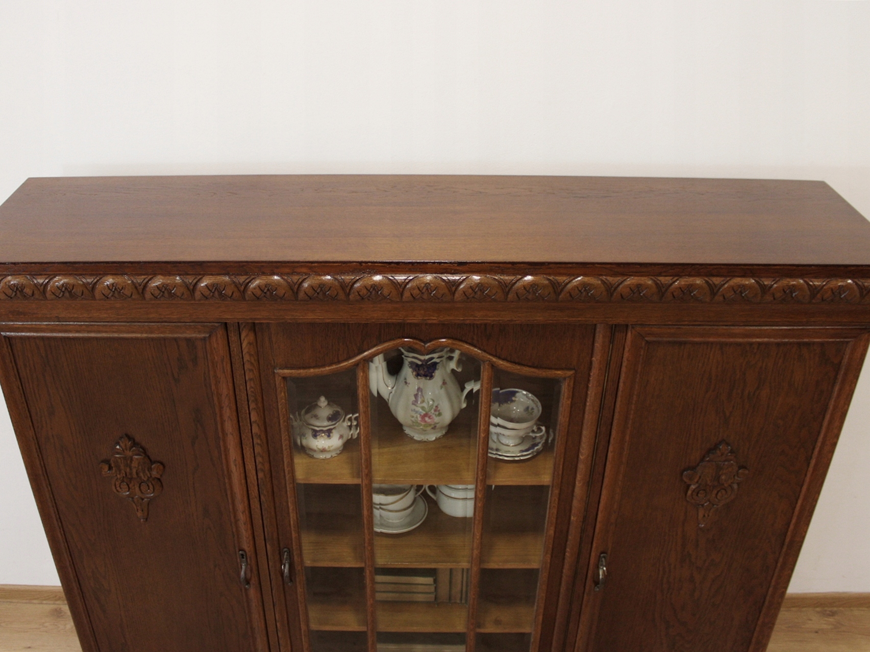 Дуже хороший стан. Меблі готові до використання. Оновлено зовнішні поверхні та інтер’єр меблів. Меблі вже старі, а сліди минулого, які не впливають на їх естетичне сприйняття, є доказом автентичності меблів. Вітрину можна відразу поставити в квартиру.
