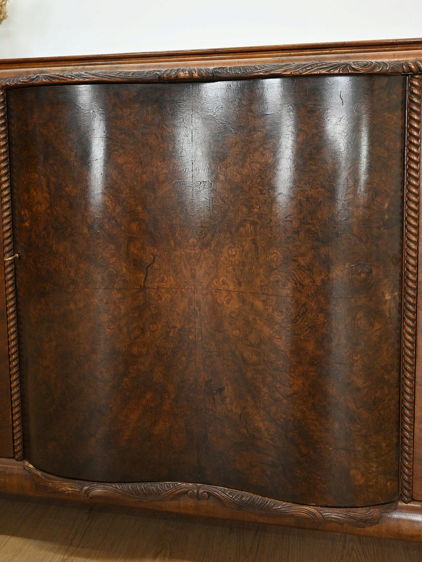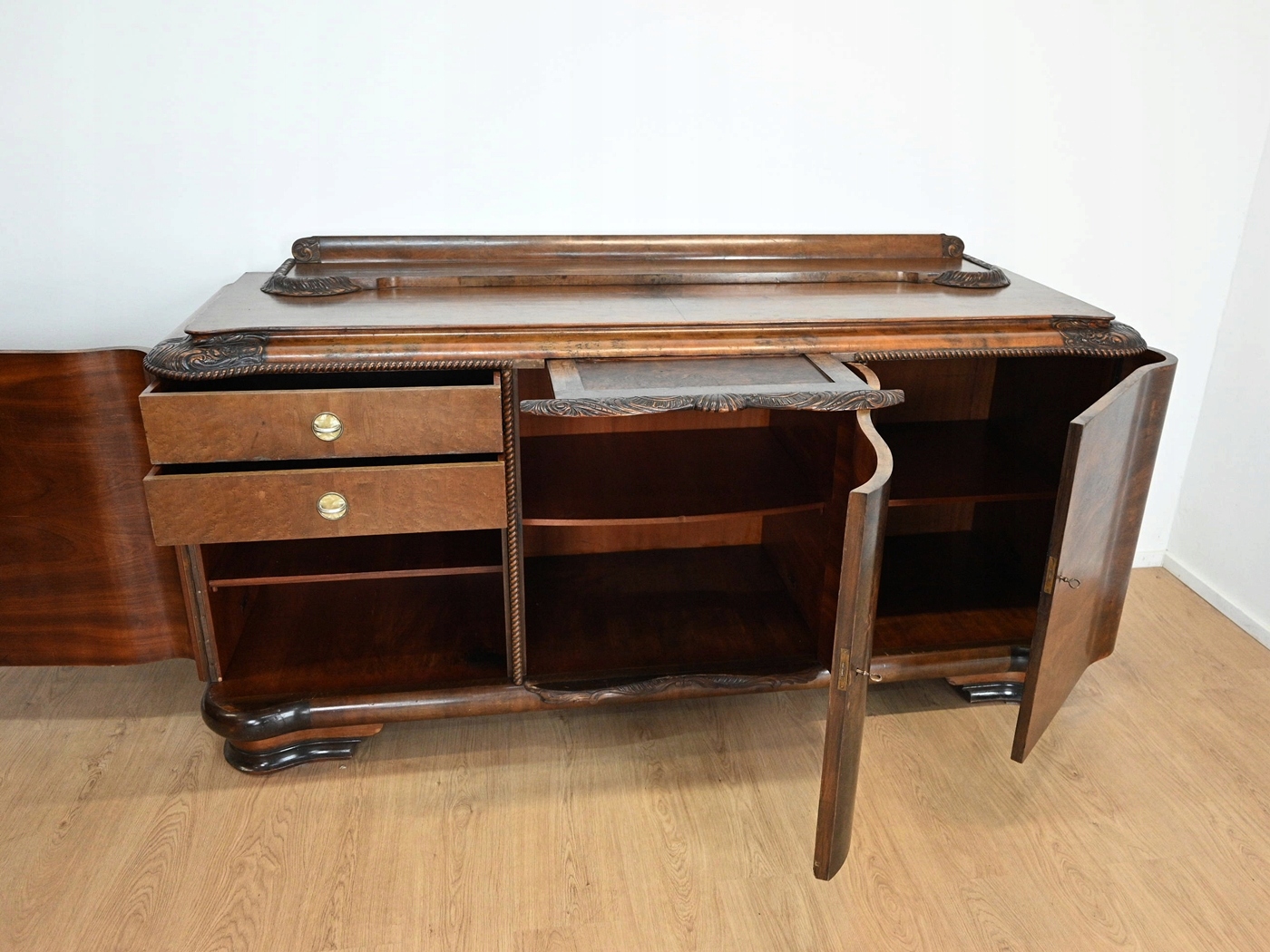 виготовляється повністю з дерева, поважного шпони. Меблі, підготовлені до використання, ви можете покласти її в квартиру. Невеликі недоліки, подряпини, потертості, нерівності кольору.