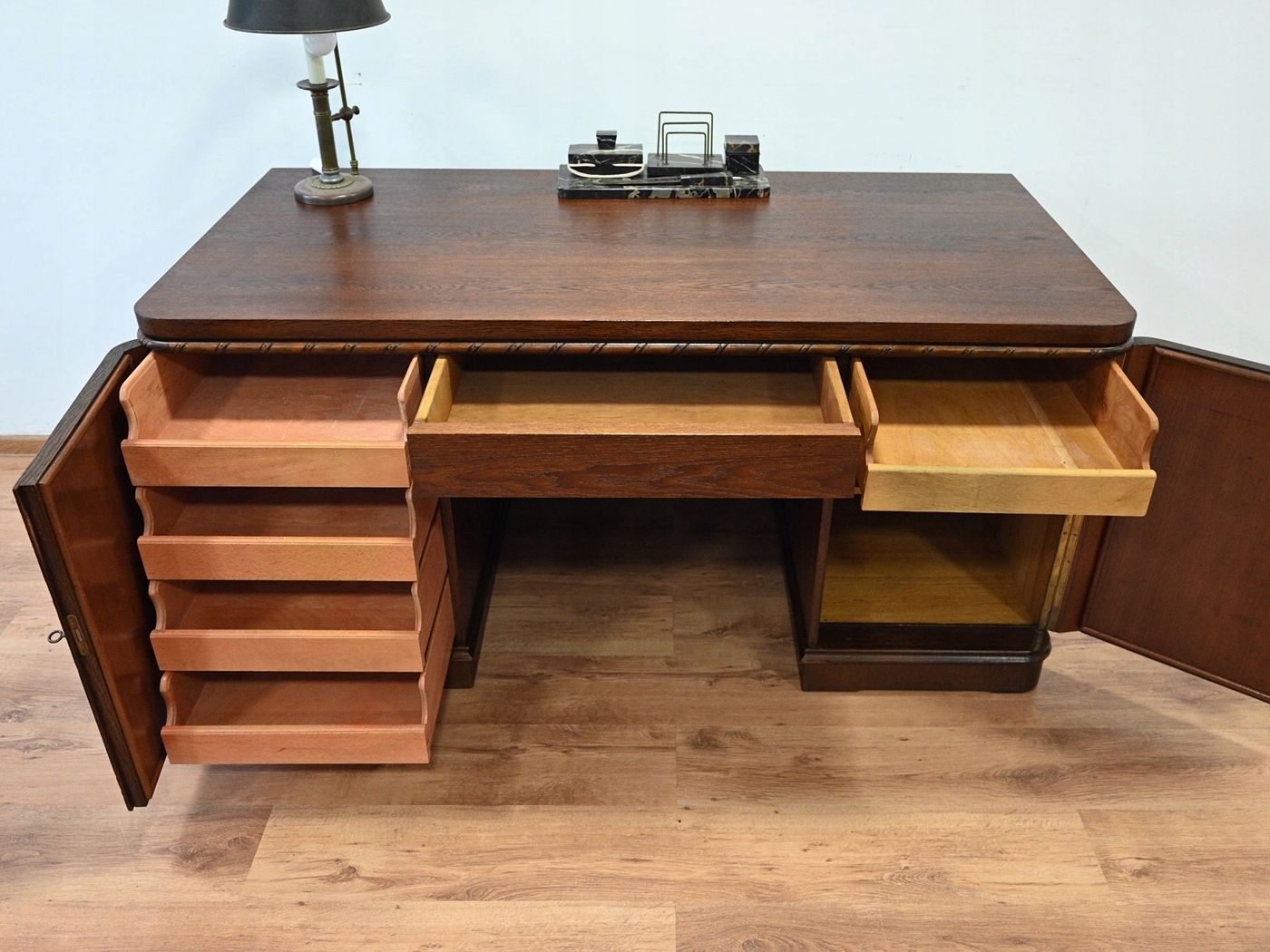 Дуже хороший стан. Меблі, підготовлені до використання. Зовнішні поверхні та центр меблів були оновлені. Меблі вже мають свої роки та сліди минулого часу, що не впливає на його естетичний прийом, вони є свідченням справжності меблів. Стіл можна негайно поставити в квартиру.