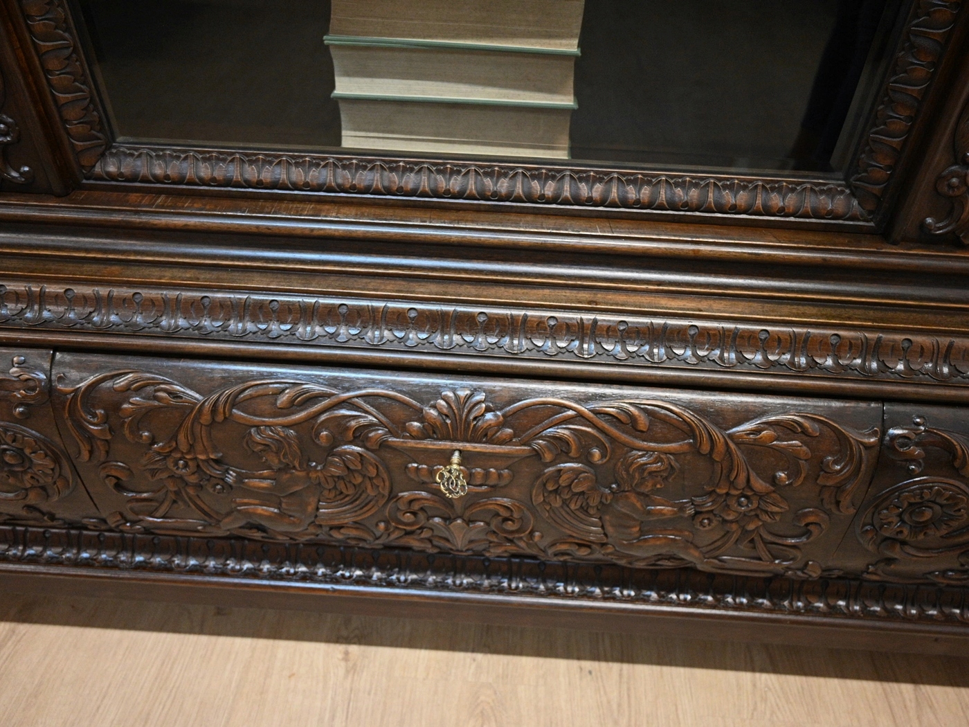 хороший стан. Меблі, підготовлені до використання. Зовнішні поверхні та центр меблів були оновлені. Меблі вже мають свої роки та сліди минулого часу, що не впливає на його естетичний прийом, вони є свідченням справжності меблів. Бібліотеку можна відразу поставити в квартиру.