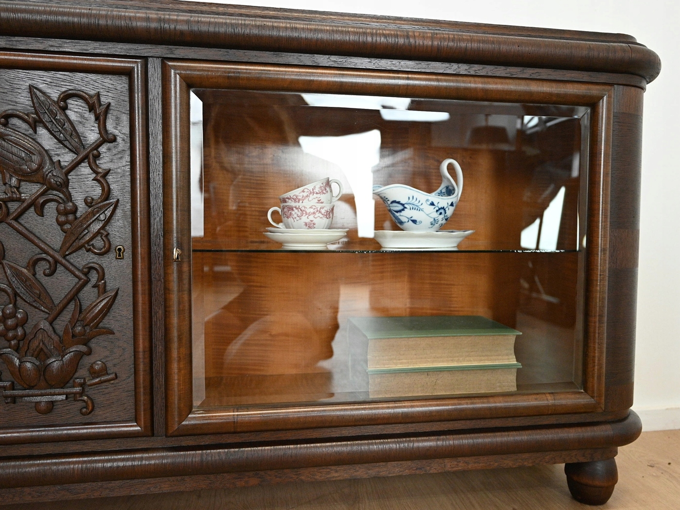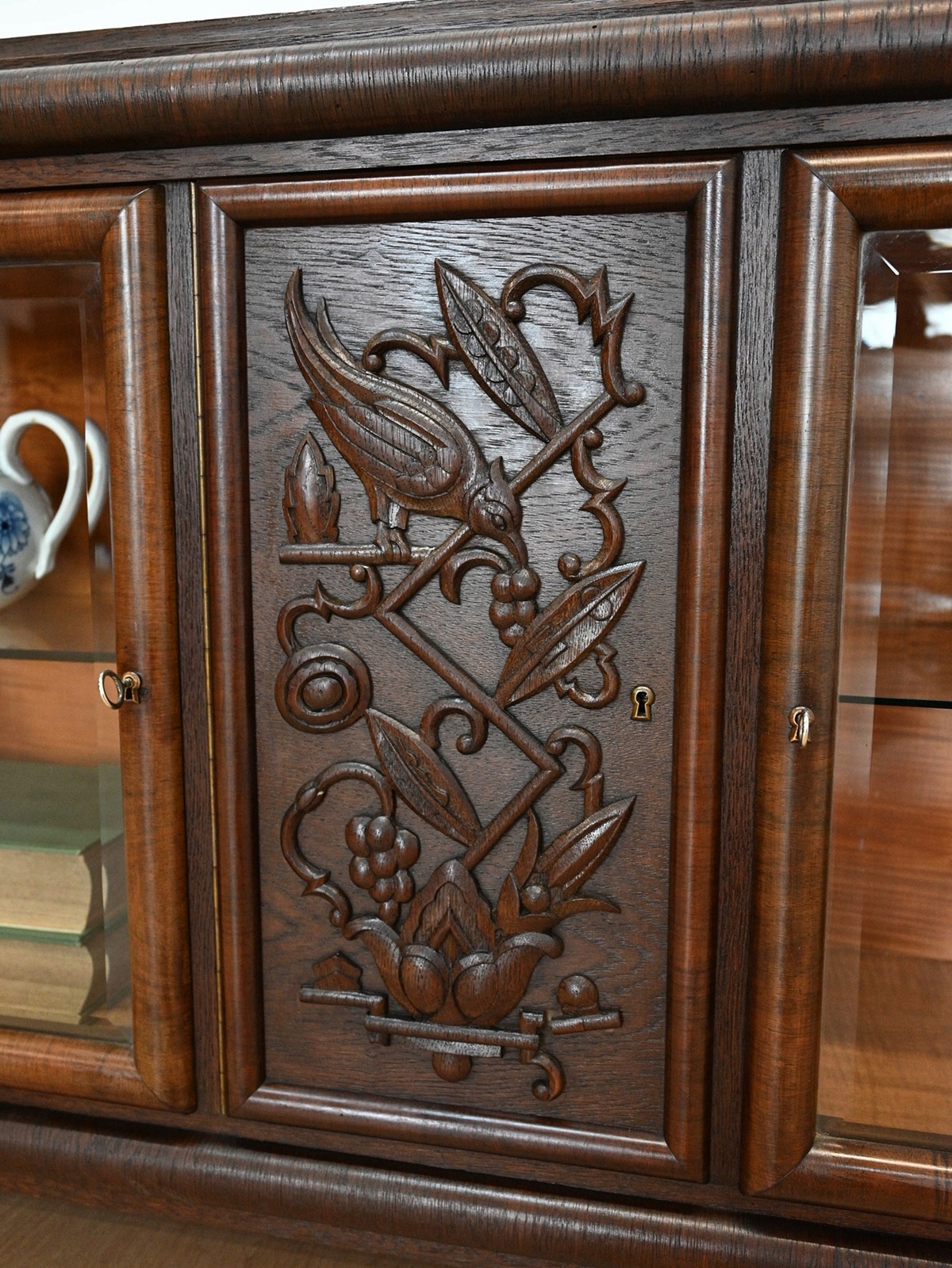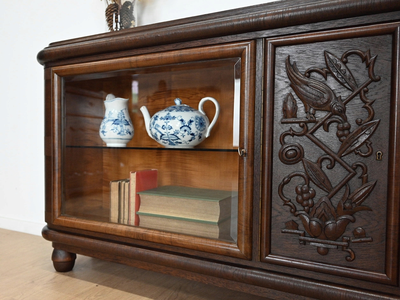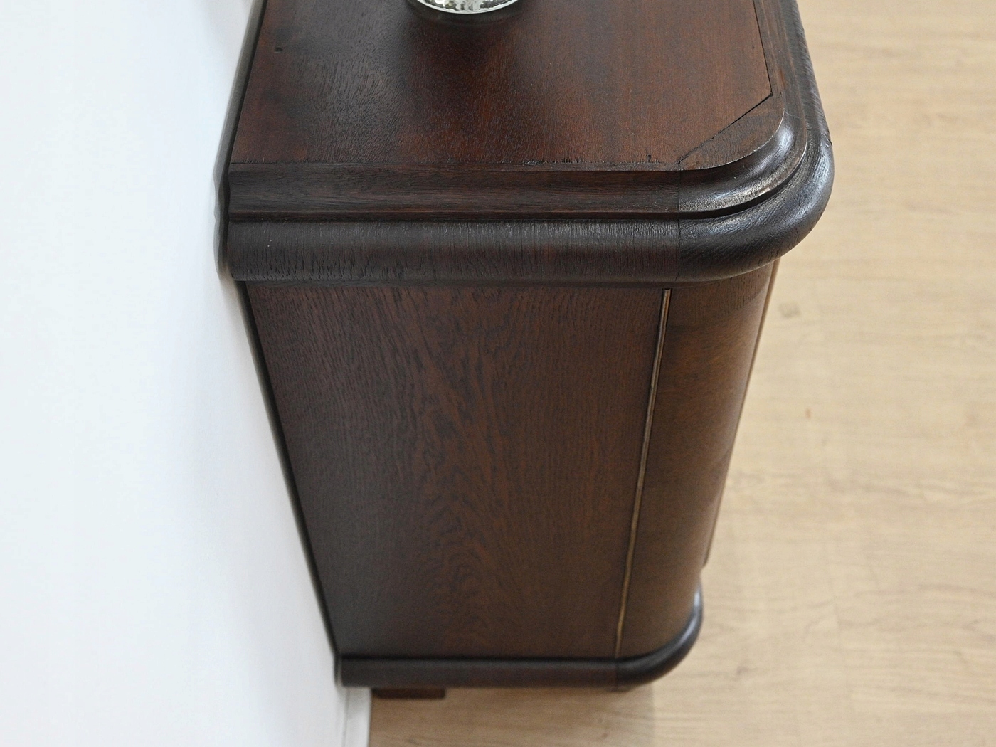 Дуже хороший стан. Меблі, підготовлені до використання. Зовнішні поверхні та центр меблів були оновлені. Меблі вже мають свої роки та сліди минулого часу, що не впливає на його естетичний прийом, вони є свідченням справжності меблів. Кабінет може негайно поставити в квартиру.