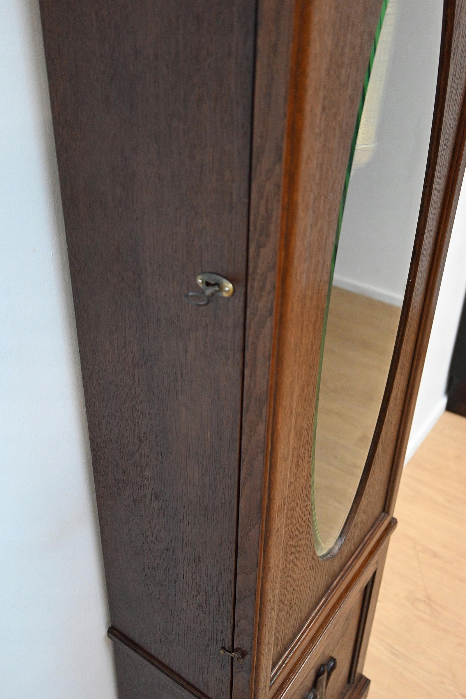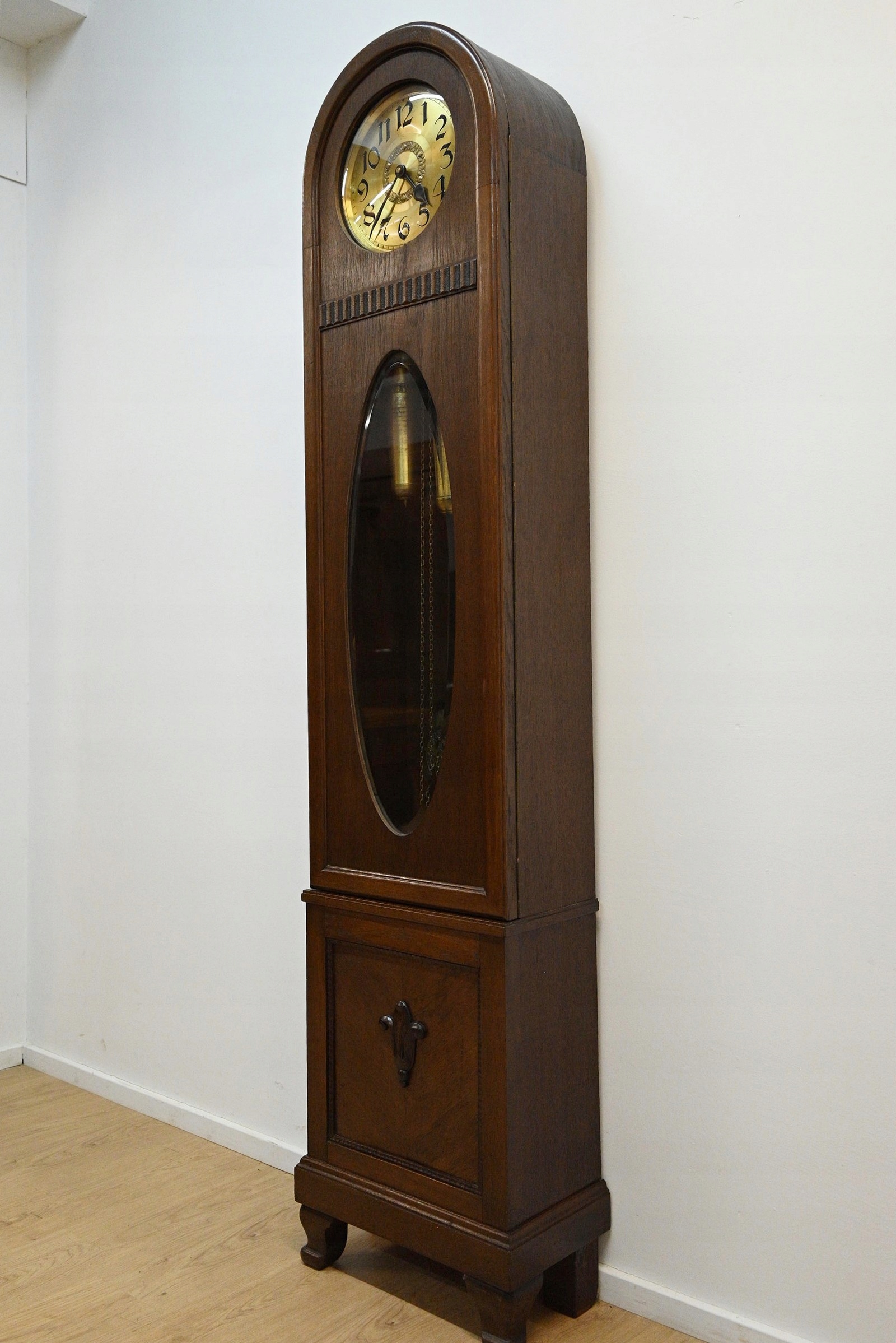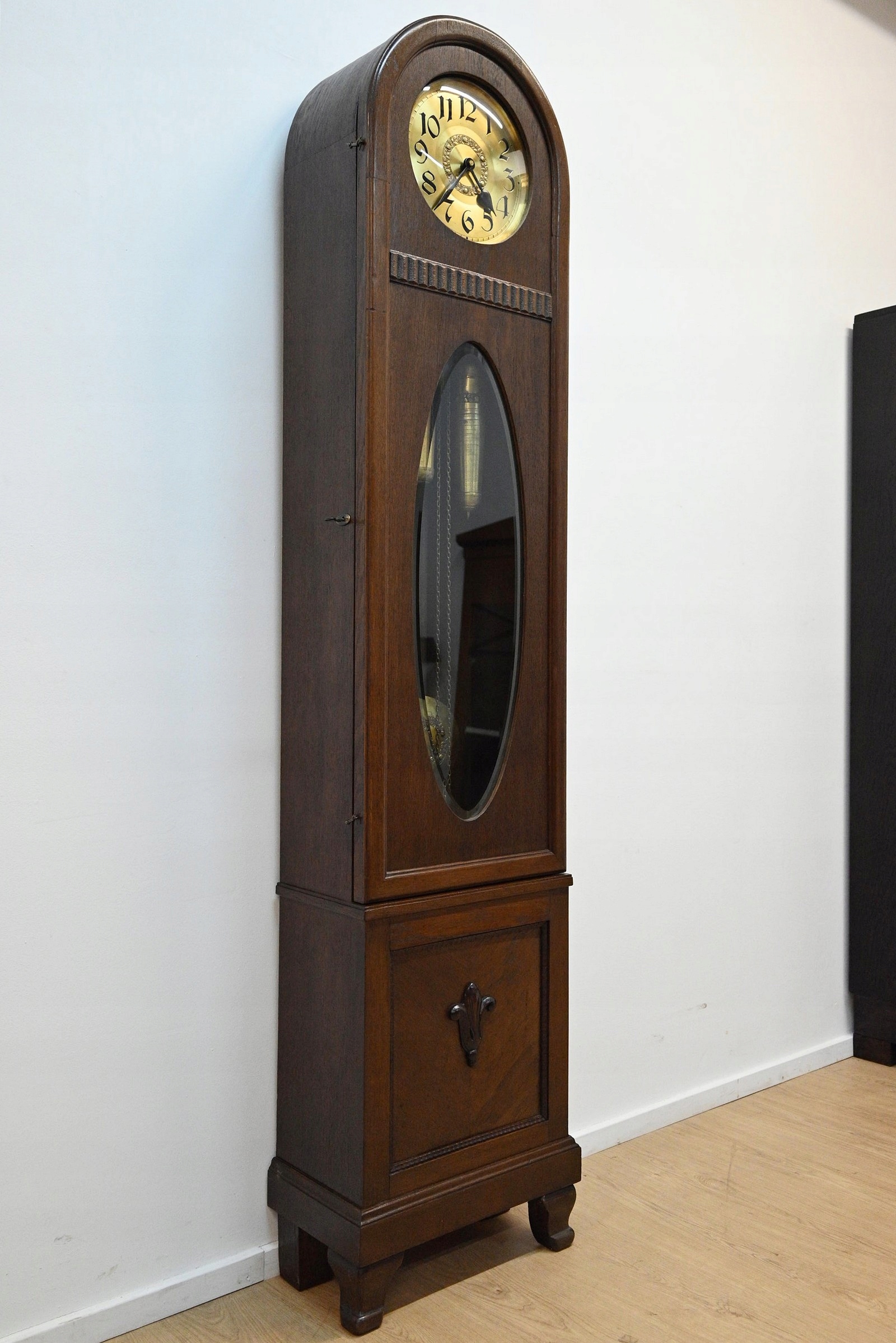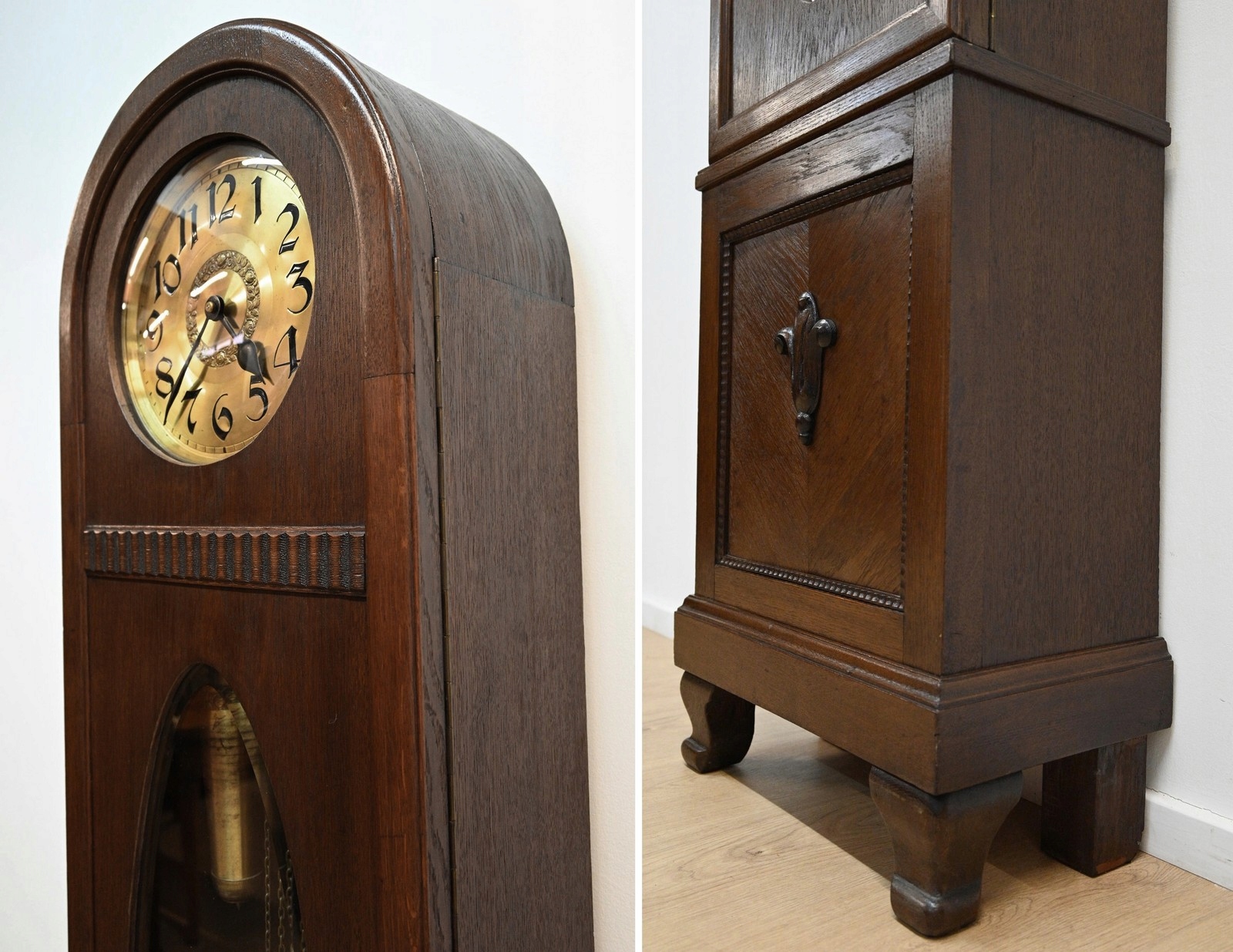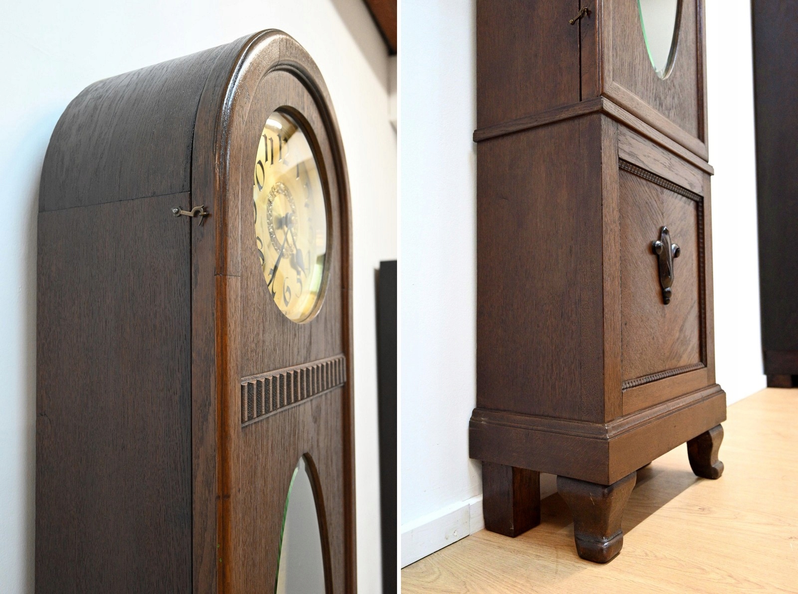 Дуже хороший стан. Меблі, підготовлені до використання. Зовнішні поверхні та центр меблів були оновлені. Меблі вже мають свої роки та сліди минулого часу, що не впливає на його естетичний прийом, вони є свідченням справжності меблів. Годинник можна відразу поставити в квартиру.