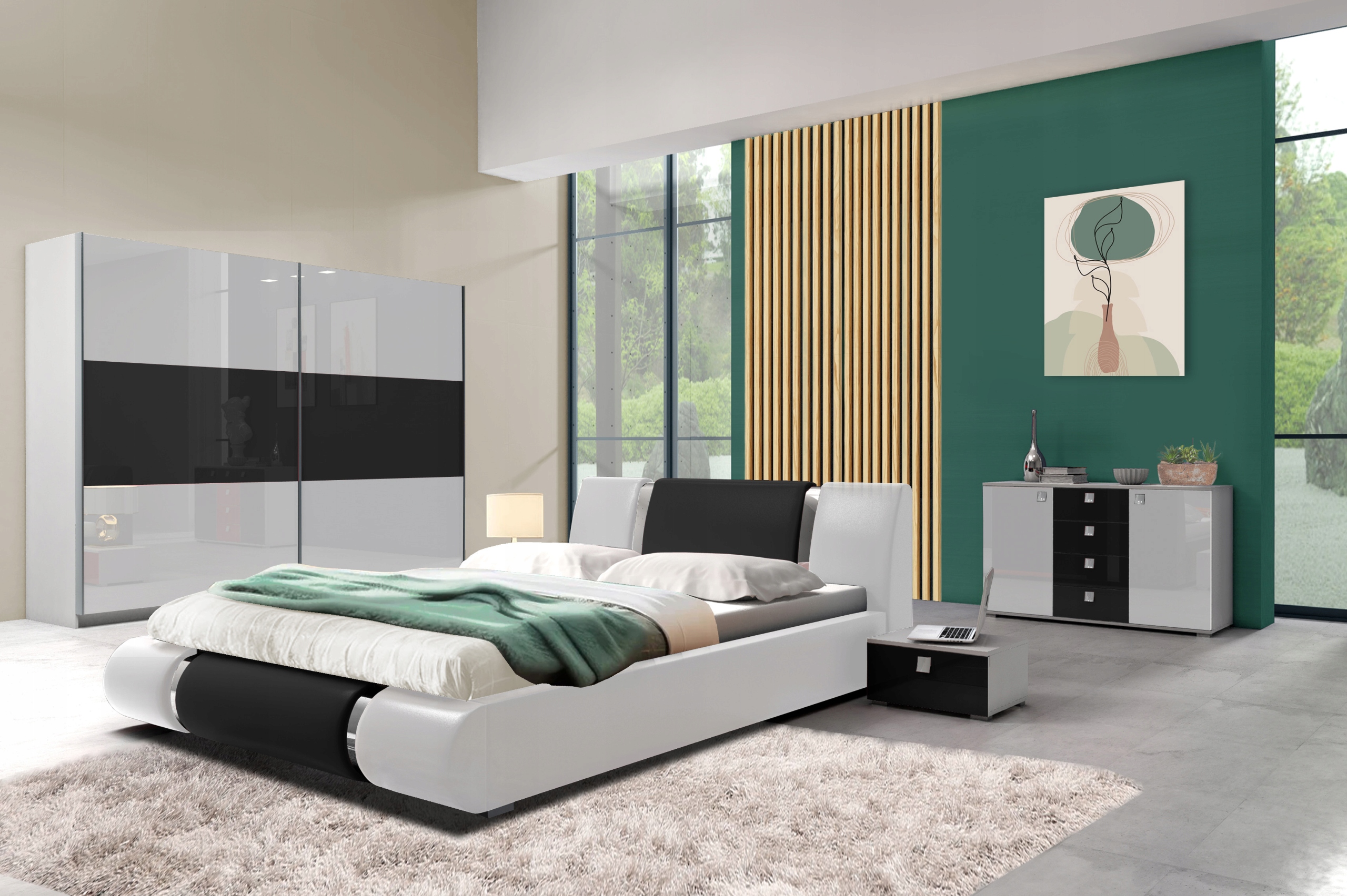 Красива сучасна спальня в чорно-білому глянці. Він складається з наступних елементів: