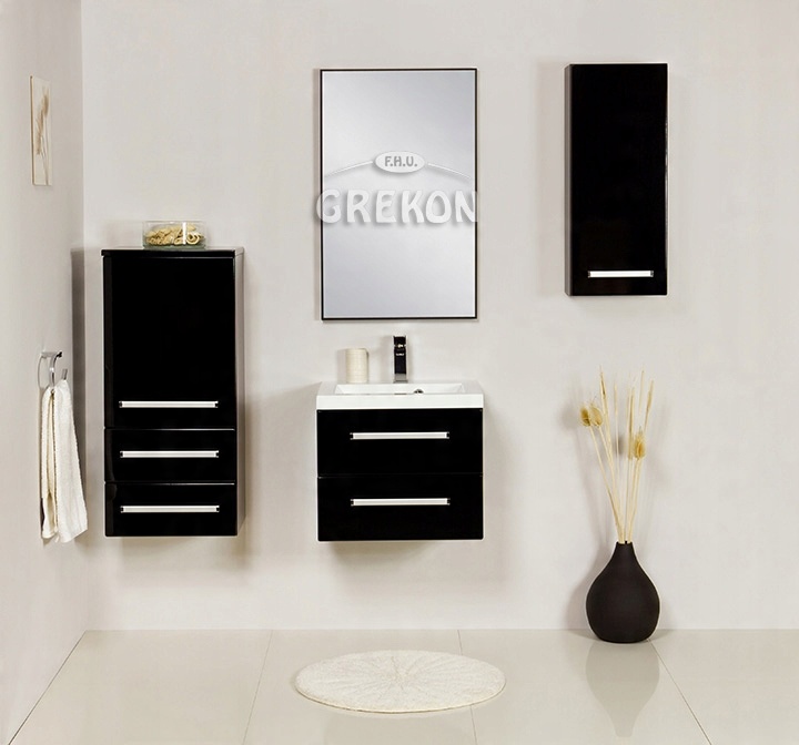 Етажерка для ванної кімнати серії FOKUS, чорна, глянець, ширина 60 см. Нижня полиця біла.