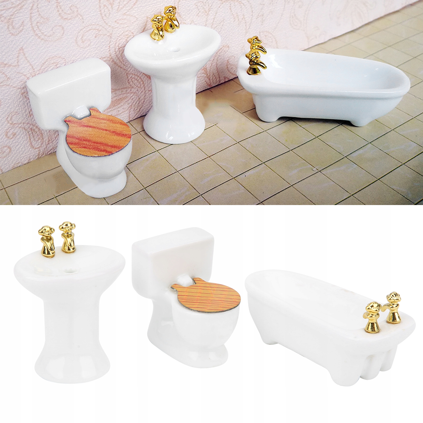1/24 ляльковий будинок Мініатюрна ванна кімната набору набору керамічної ванни набору мийки