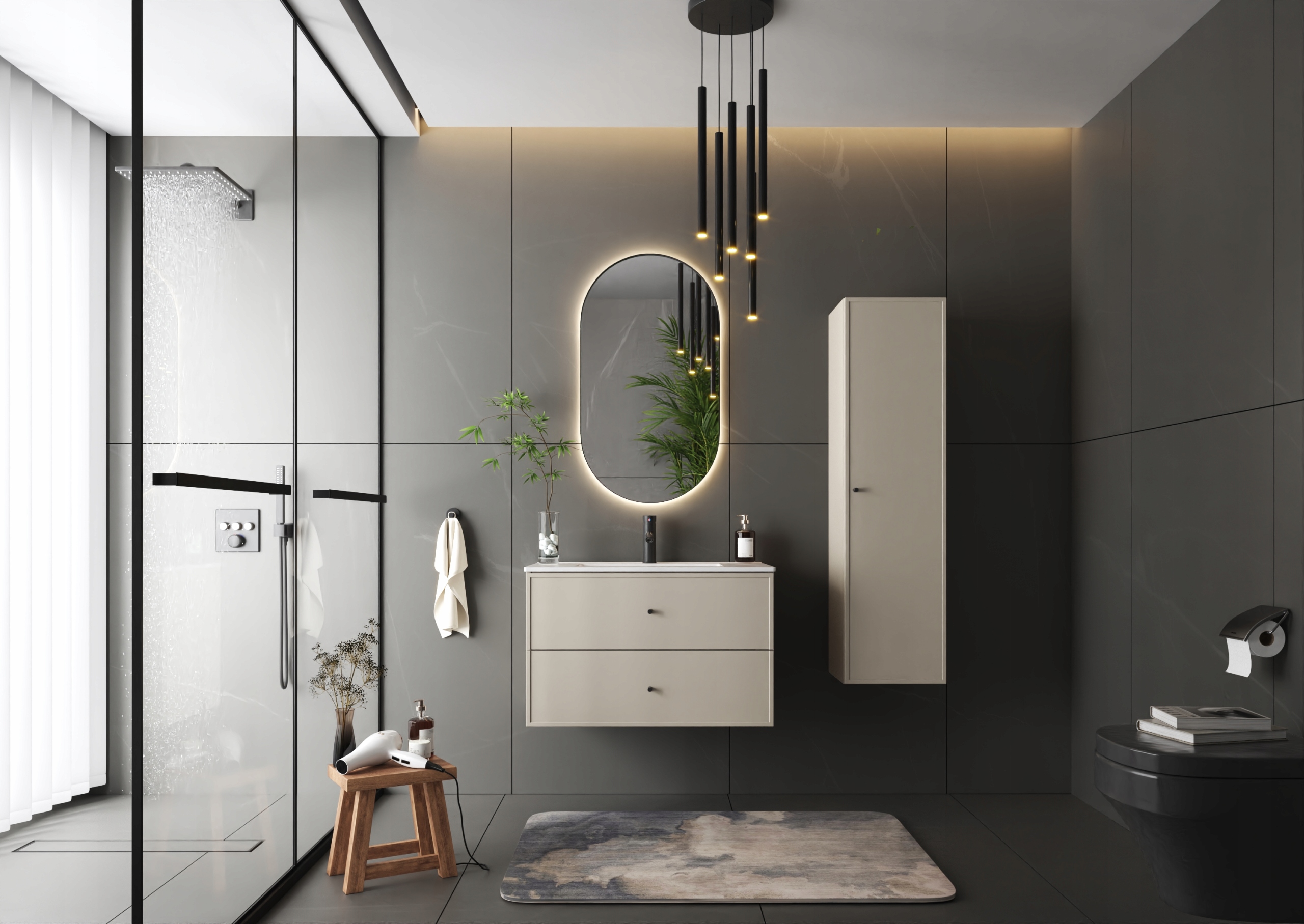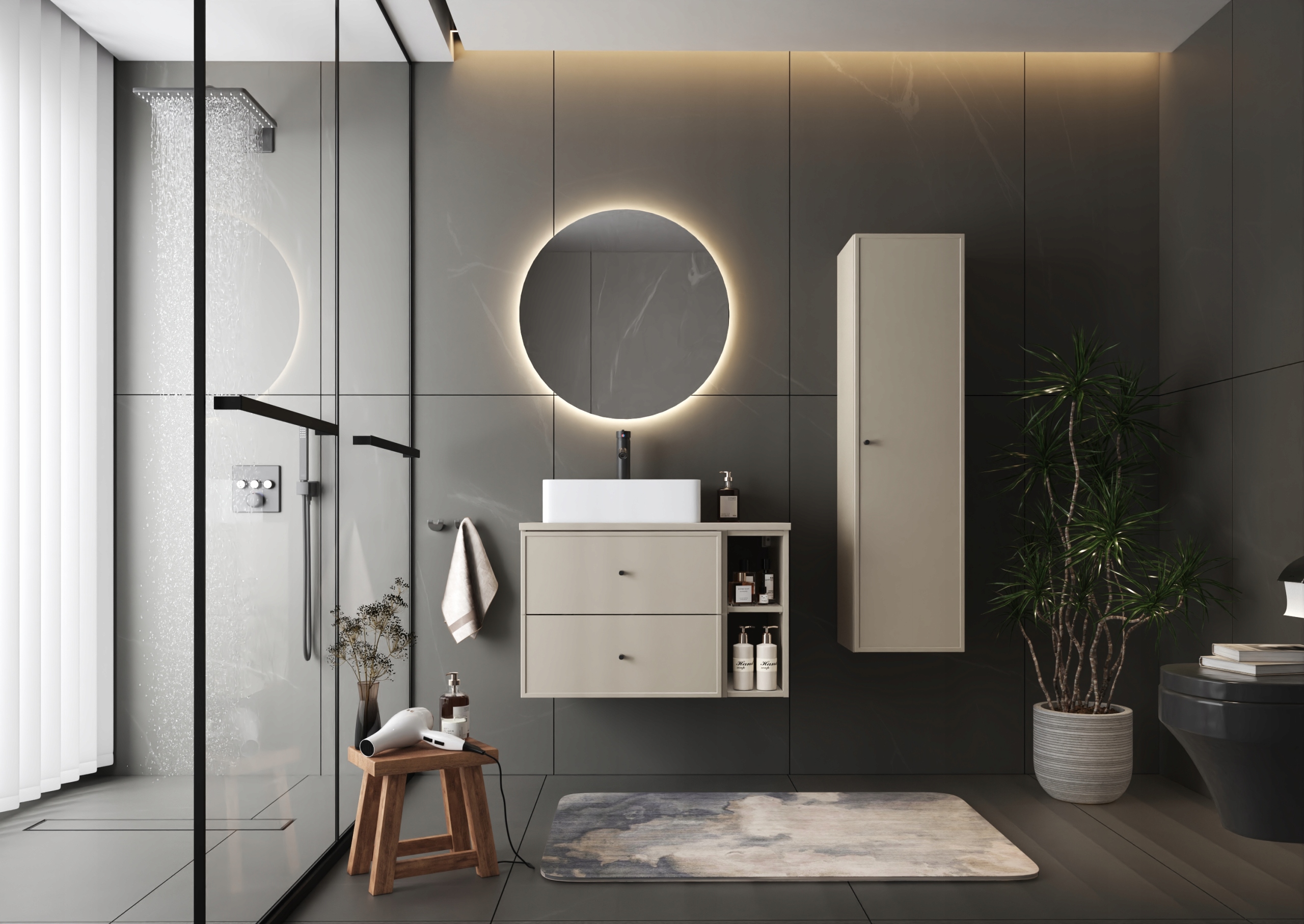 білий килимок, кашемір, змащений дубНабір меблів для ванної кімнати Marco - Інтер'єр: