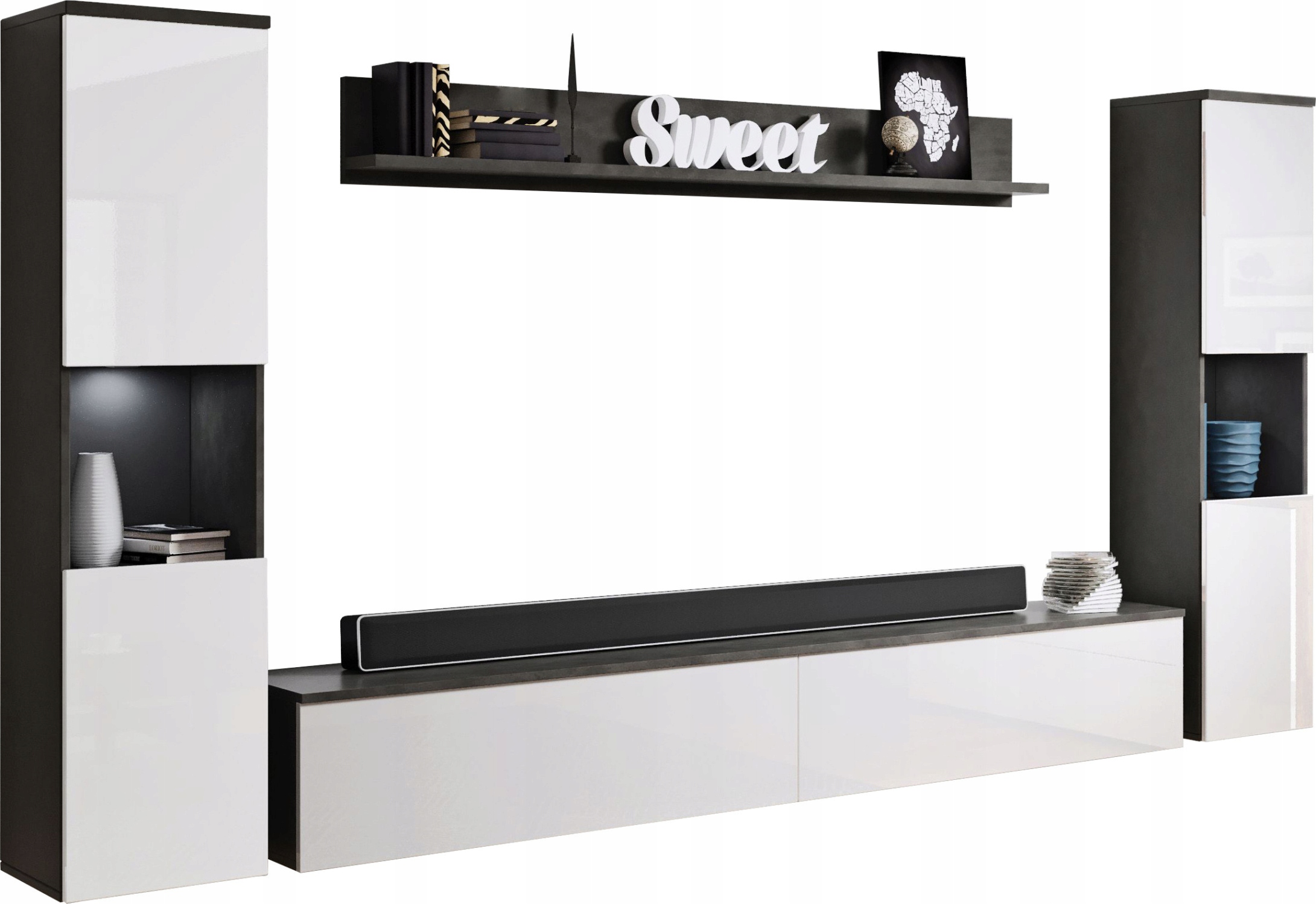 Меблі для вітальні 4 елементи антрациту білого