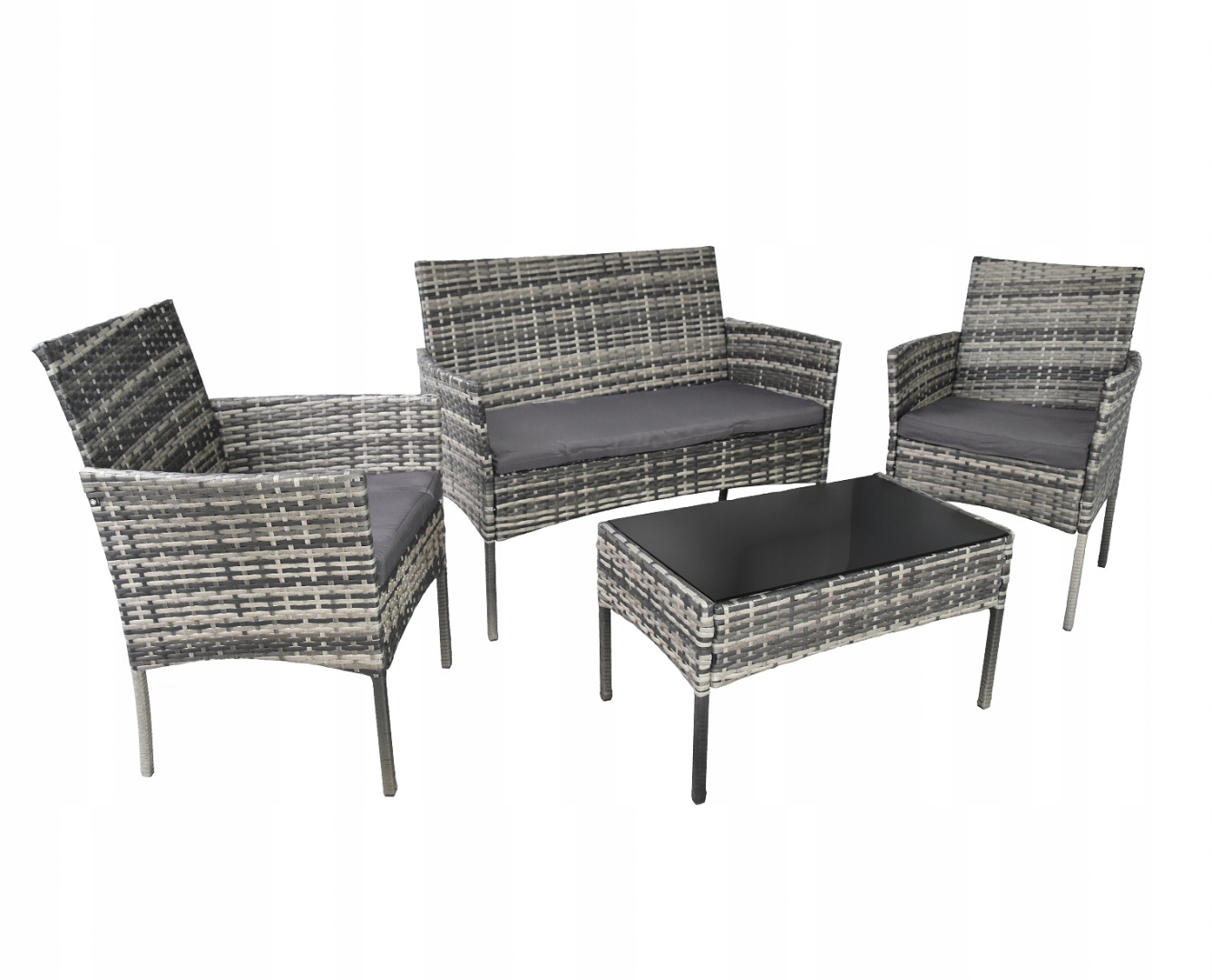 КОМПЛЕКТ МЕБЛІВ З РОТАНГУ, 2-МІСНЕ СИДІННЯ, 2 СТІЛЬЦЯ, СІРИЙ КАВОВИЙ СТОЛ