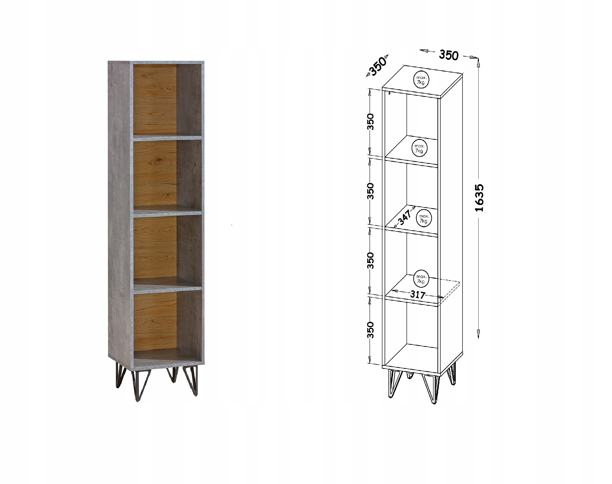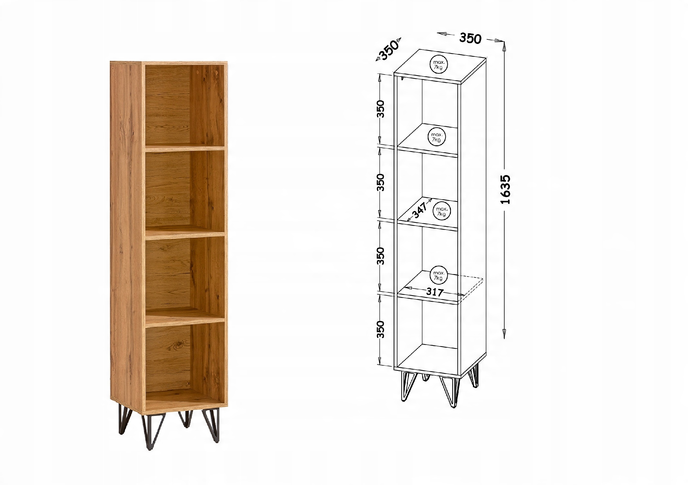 - Лофтер LO10 - 35 x 35 x 163,5 - відкрита книжкова шафа з полицями для книг, вузька колона