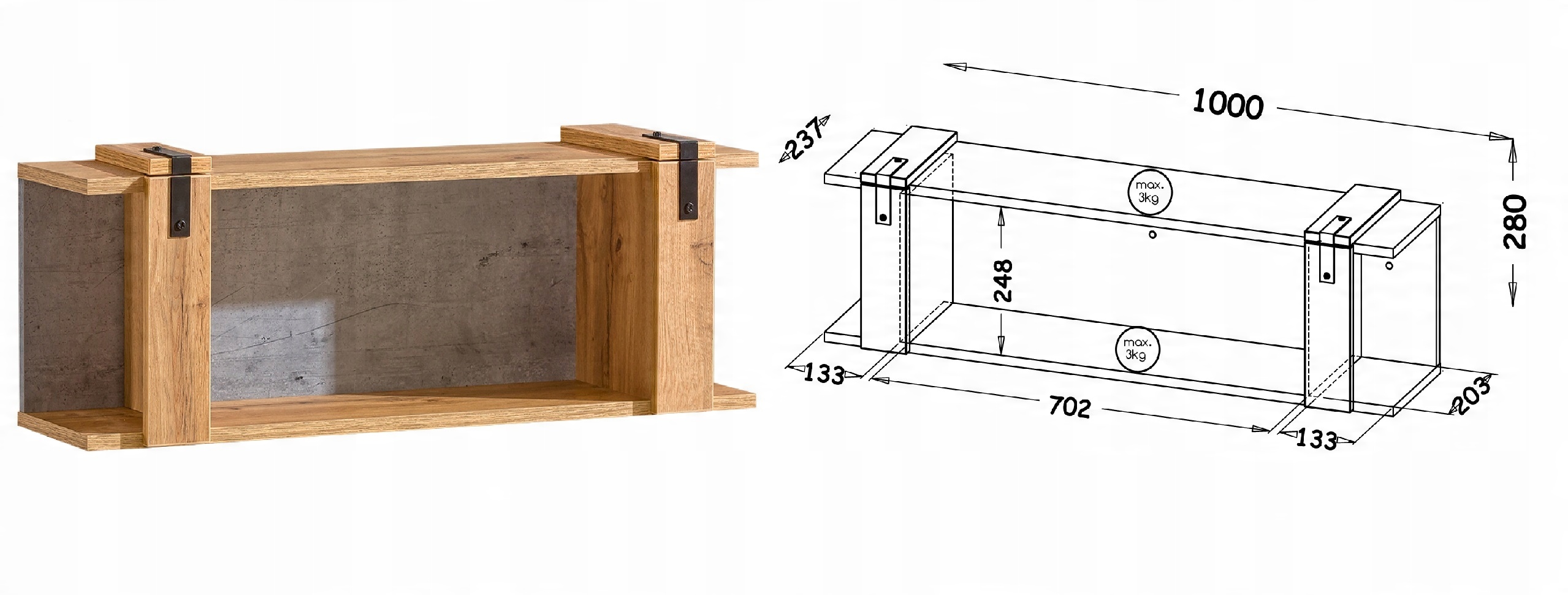 - Lofter LO8 - 100 x 29.6 x 23.7 - дворівнева полиця в стилі лофт