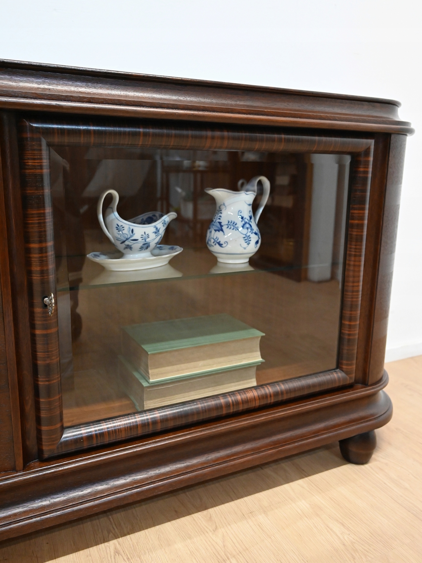 Дуже хороший стан. Меблі готові до використання. Оновлено зовнішні поверхні та інтер’єр меблів. Меблі вже старі, а сліди минулого, які не впливають на їх естетичне сприйняття, є доказом автентичності меблів. Шафу можна відразу поставити в квартиру.