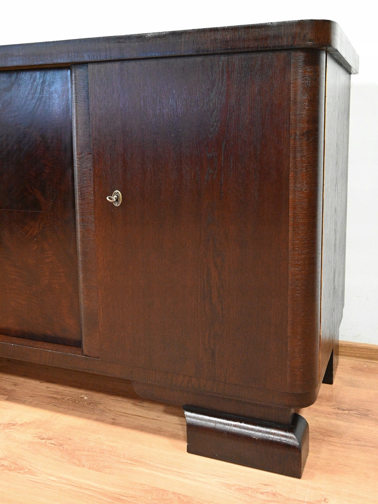 Дуже хороший стан. Меблі готові до використання. Оновлено зовнішні поверхні та інтер’єр меблів. Меблі вже старі, а сліди минулого, які не впливають на їх естетичне сприйняття, є доказом автентичності меблів. Комод можна відразу поставити в квартиру.