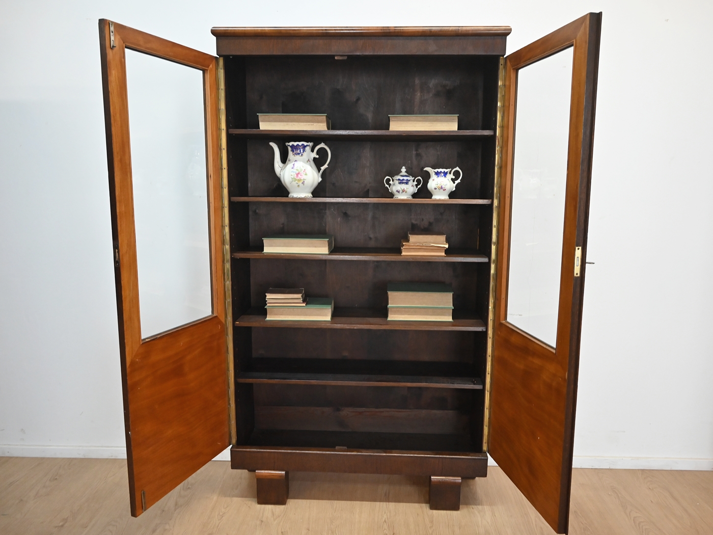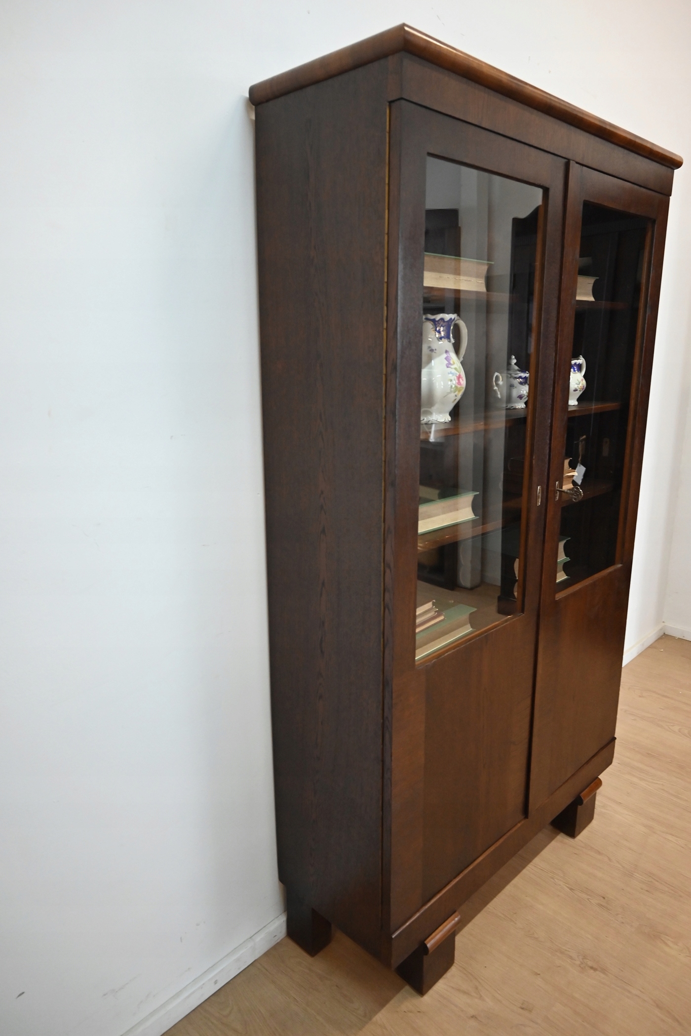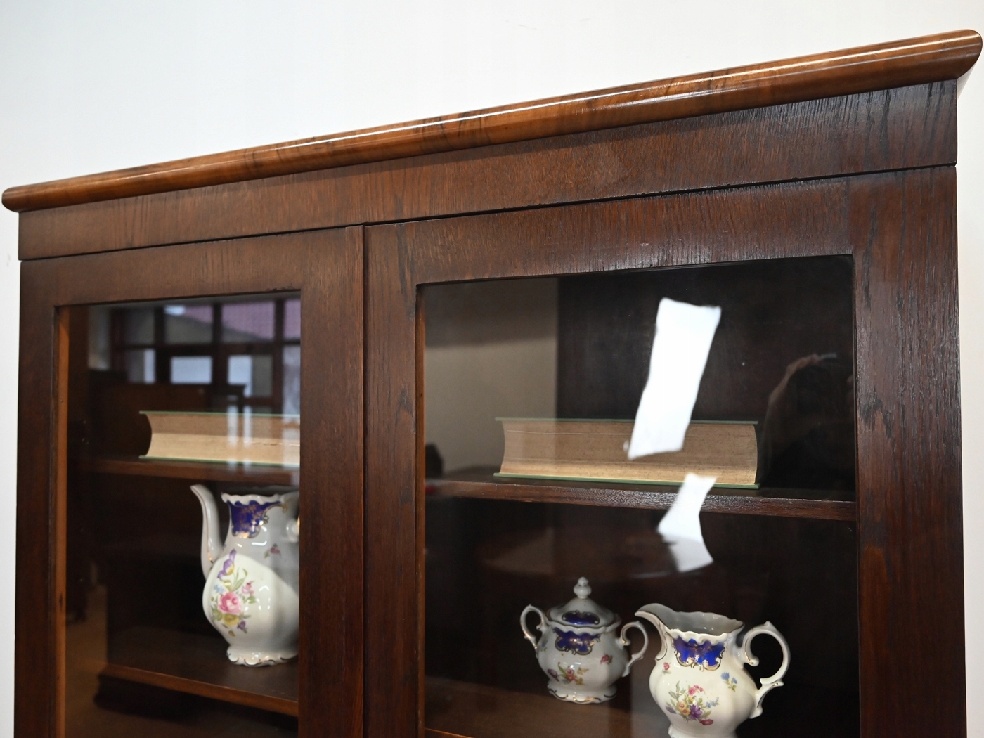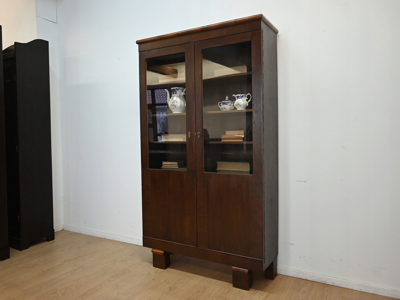 Дуже хороший стан. Меблі готові до використання. Оновлено зовнішні поверхні та інтер’єр меблів. Меблі вже старі, а сліди минулого, які не впливають на їх естетичне сприйняття, є доказом автентичності меблів. Вітрину можна відразу поставити в квартиру.