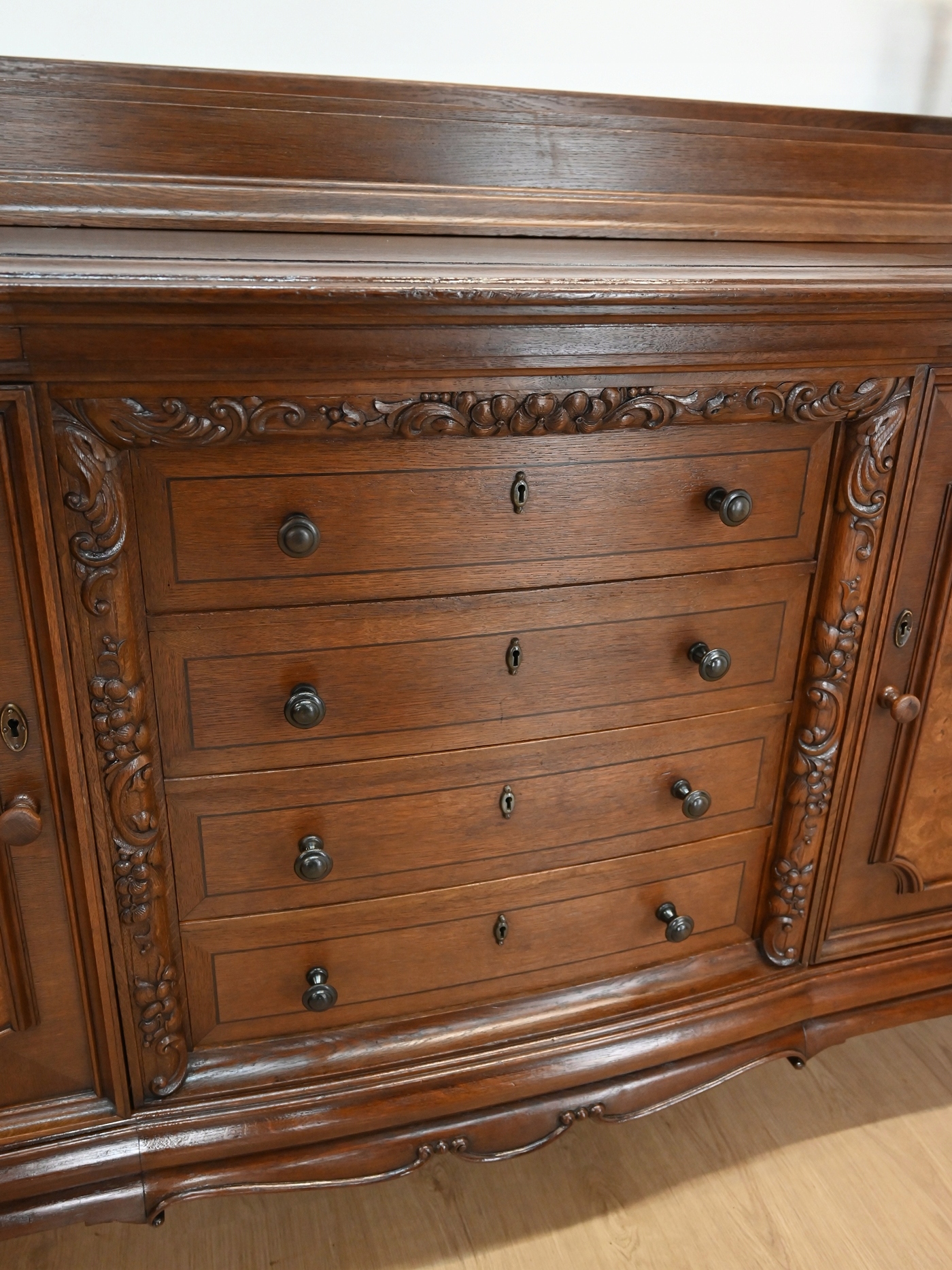 Сліди мокриць, невелика кількість на звороті та знизу. Меблі просочені препаратом від жуків-короїдів. Активного короїда немає.
