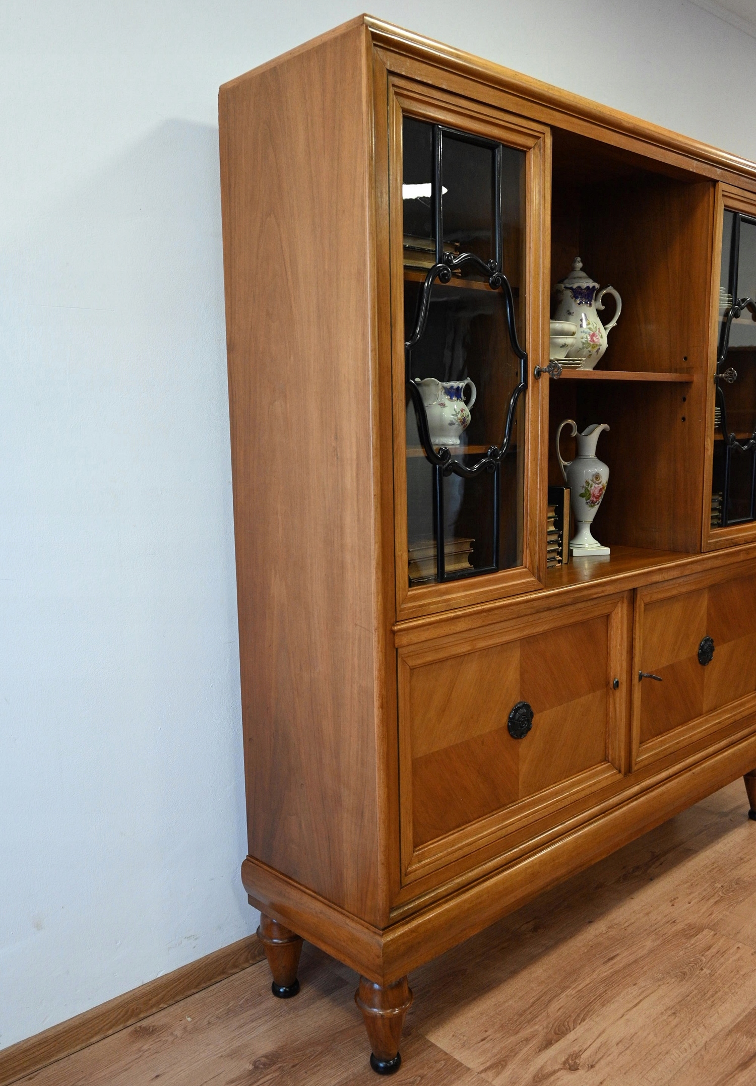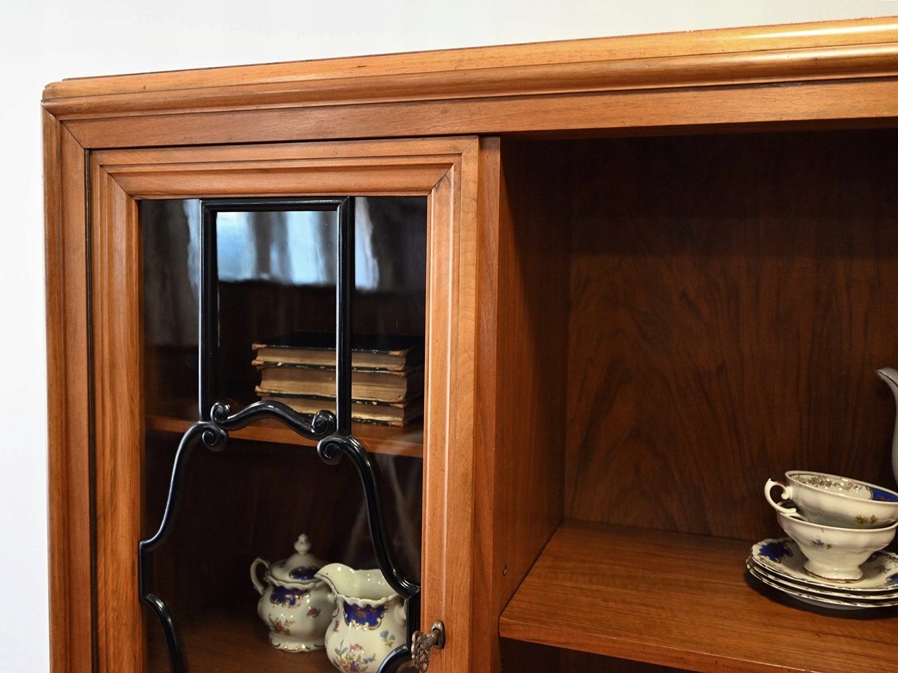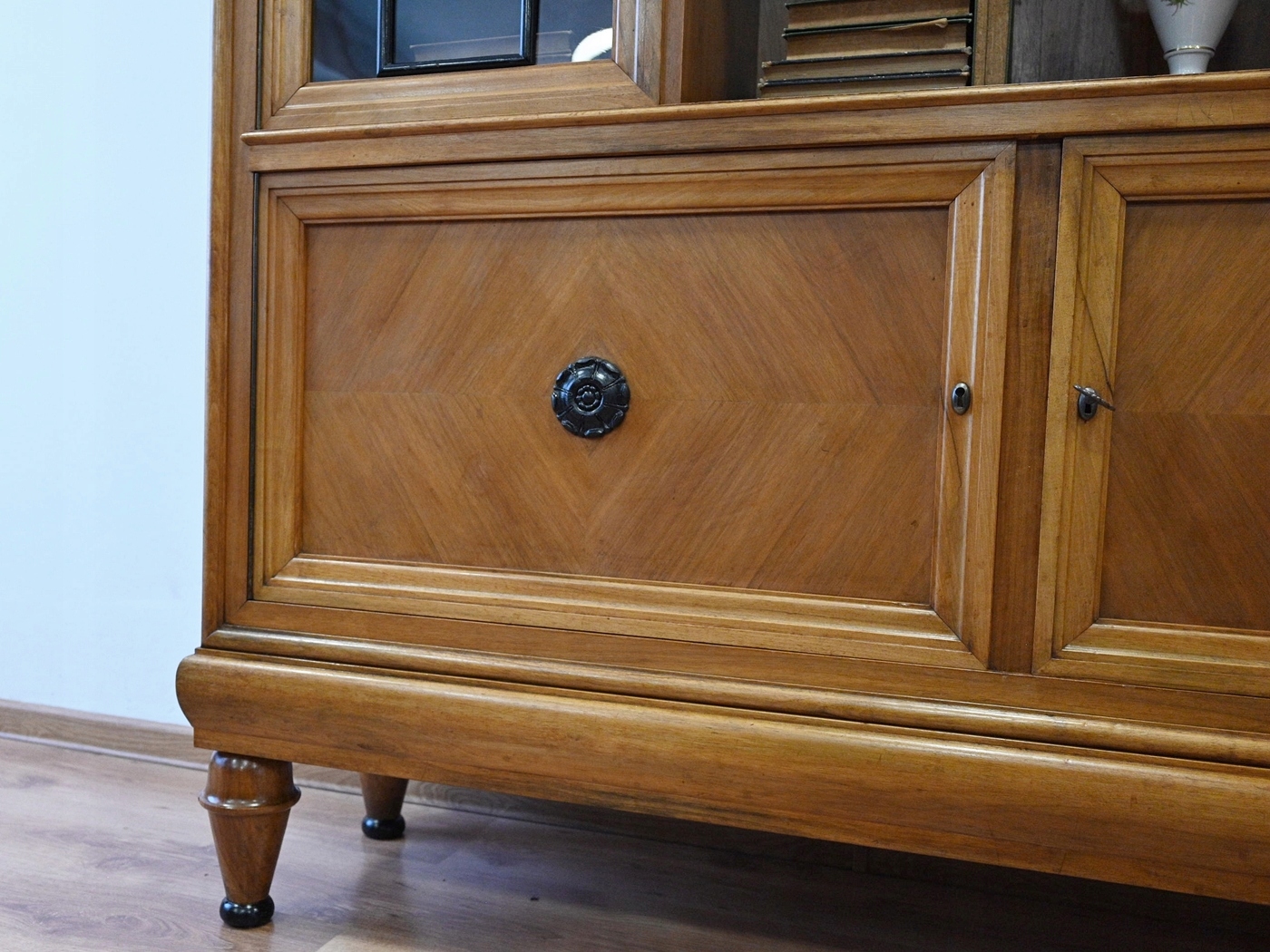 Гарний стан. Меблі готові до використання. Оновлено зовнішні поверхні та інтер’єр меблів. Меблі вже старі, а сліди минулого, які не впливають на їх естетичне сприйняття, є доказом автентичності меблів. Вітрину можна відразу поставити в квартиру.