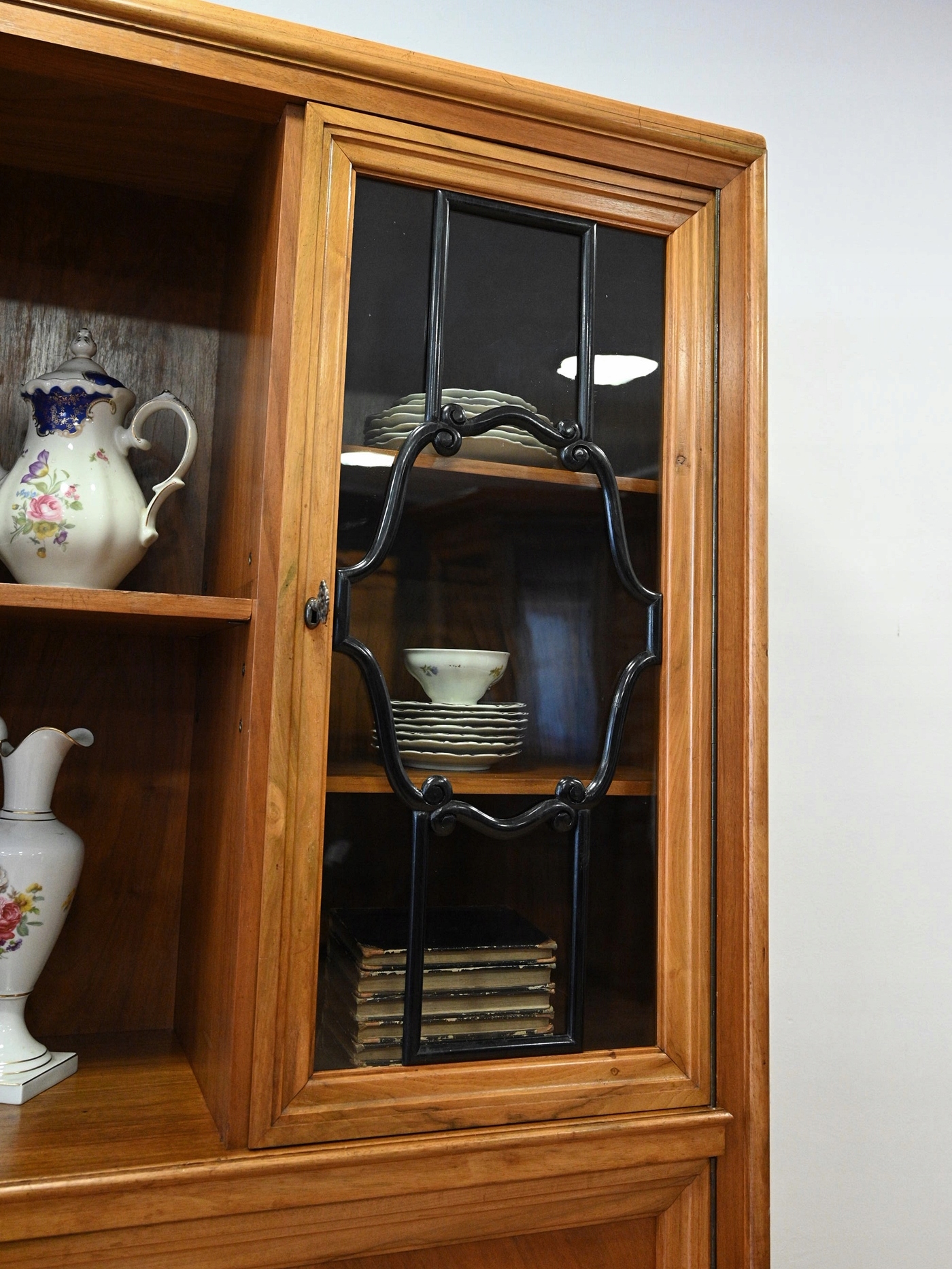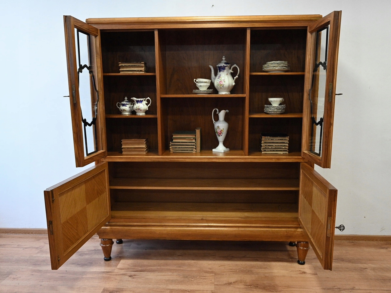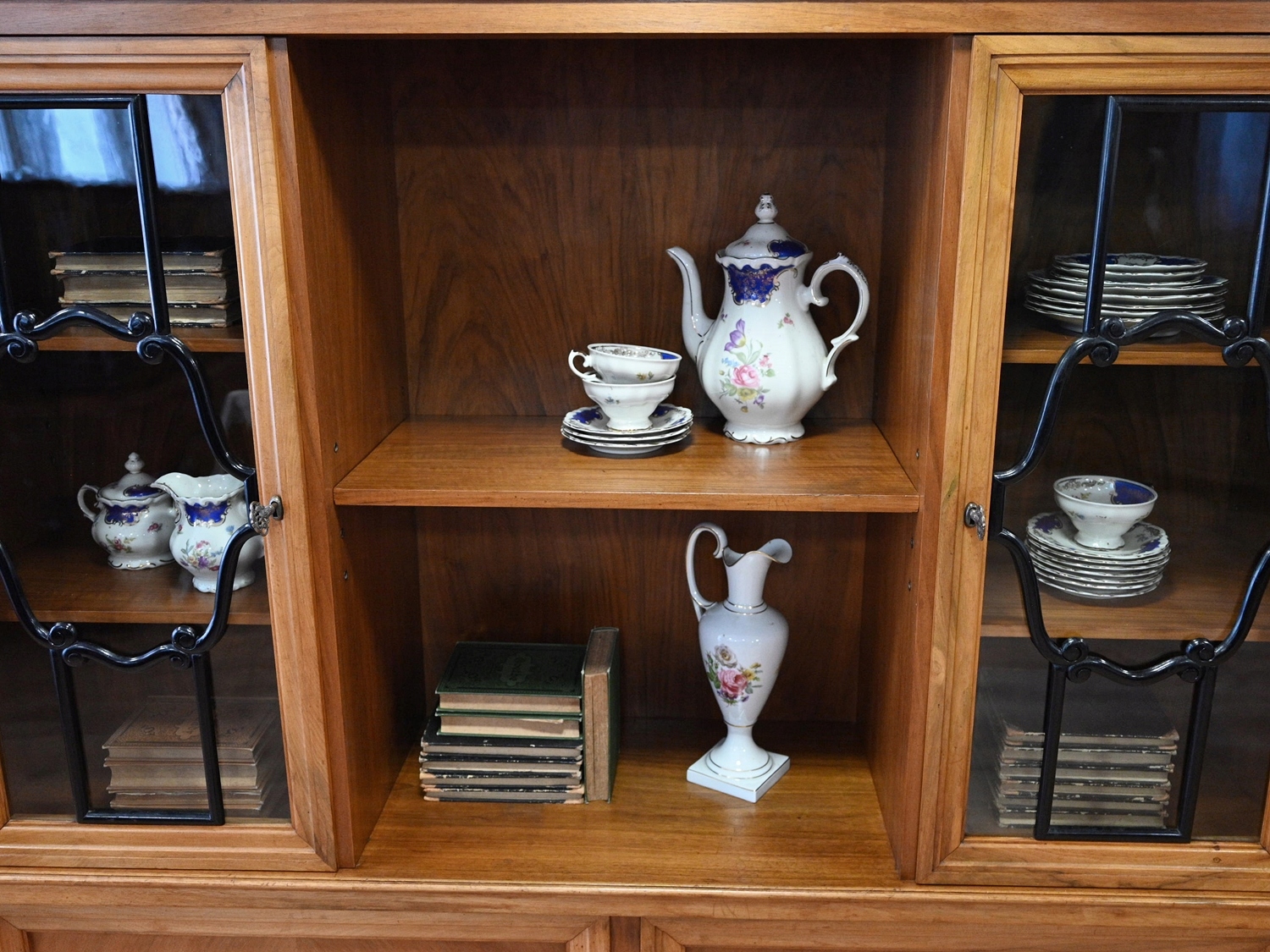 Гарний стан. Меблі готові до використання. Оновлено зовнішні поверхні та інтер’єр меблів. Меблі вже старі, а сліди минулого, які не впливають на їх естетичне сприйняття, є доказом автентичності меблів. Вітрину можна відразу поставити в квартиру.