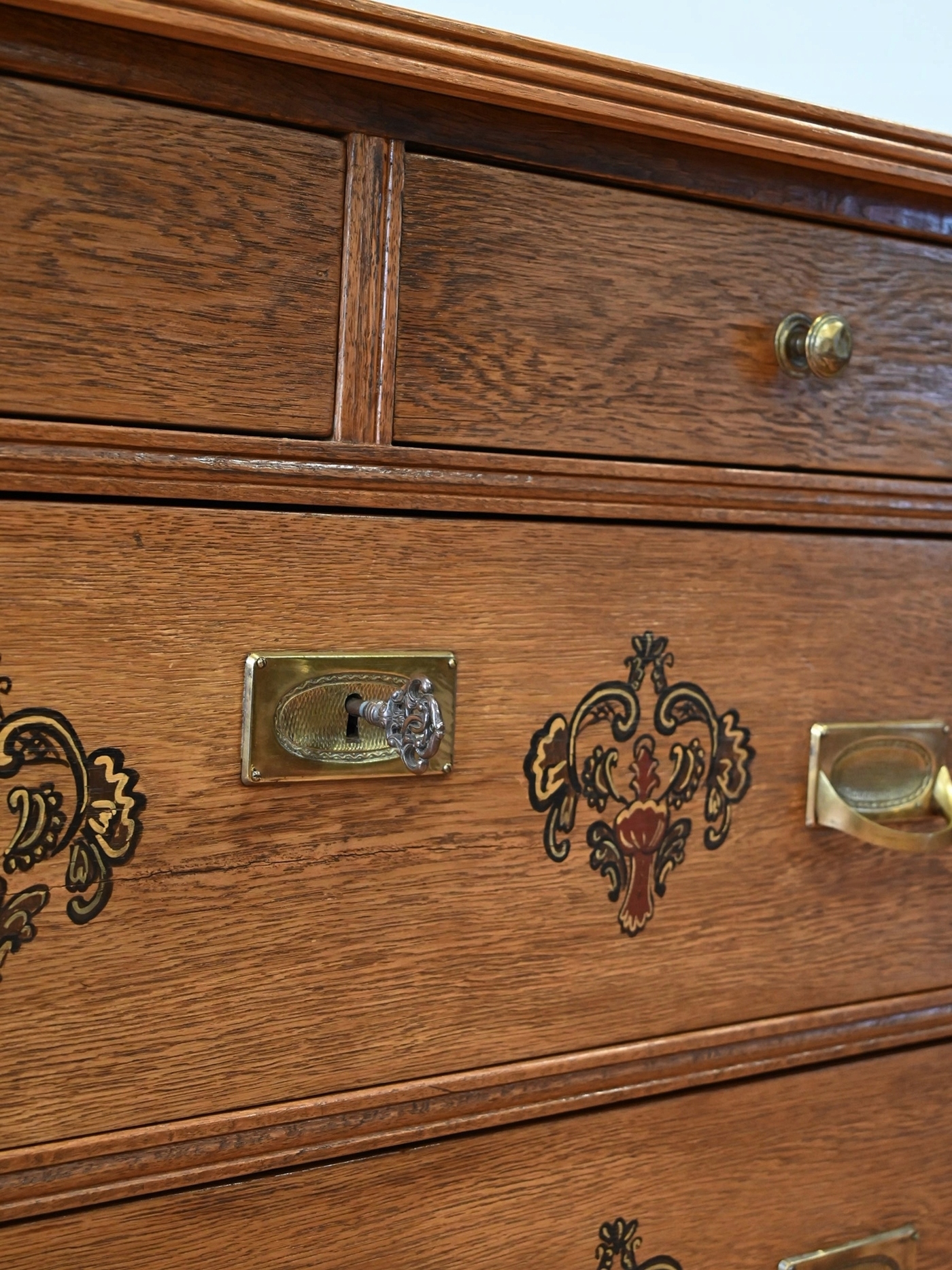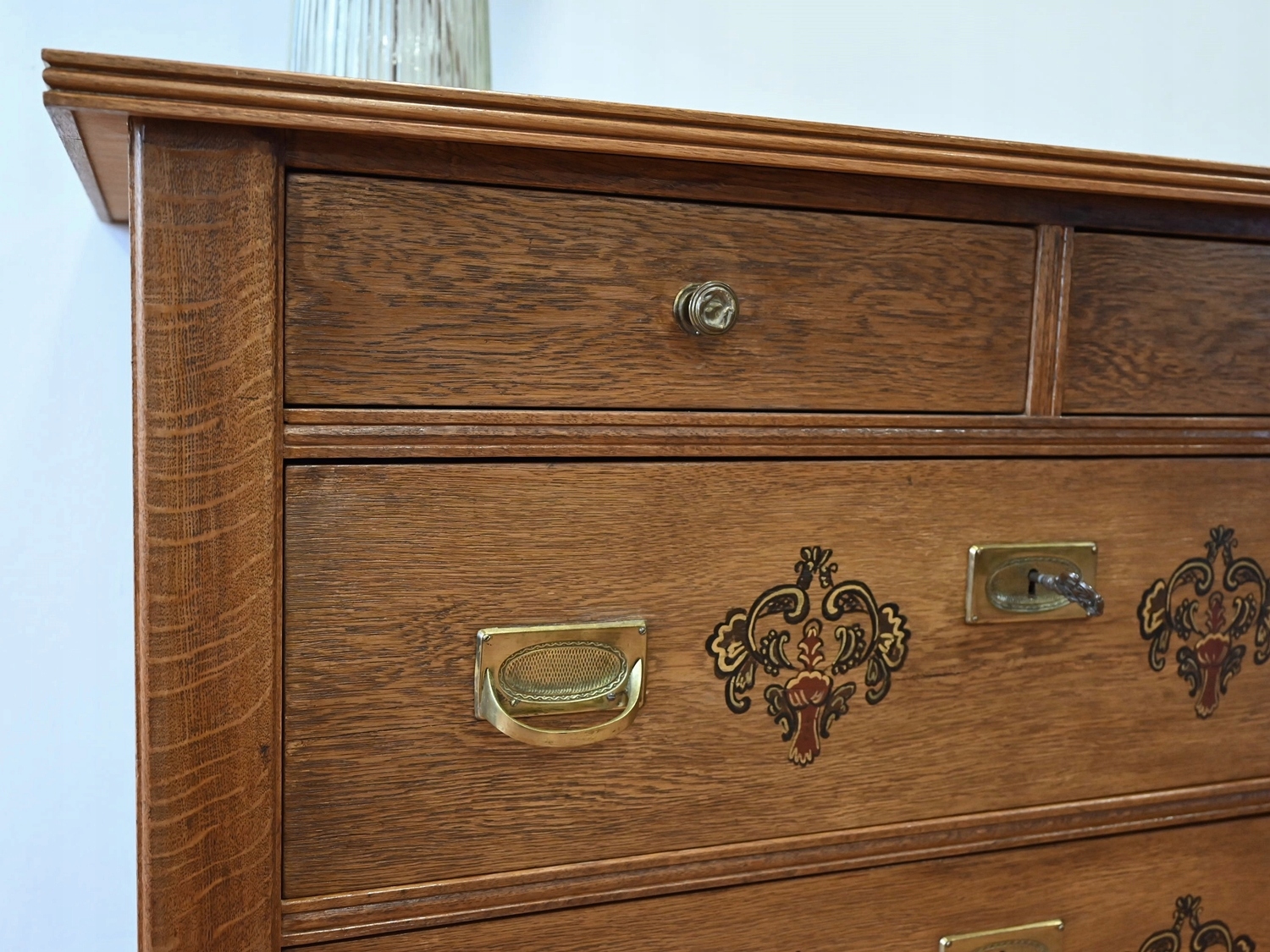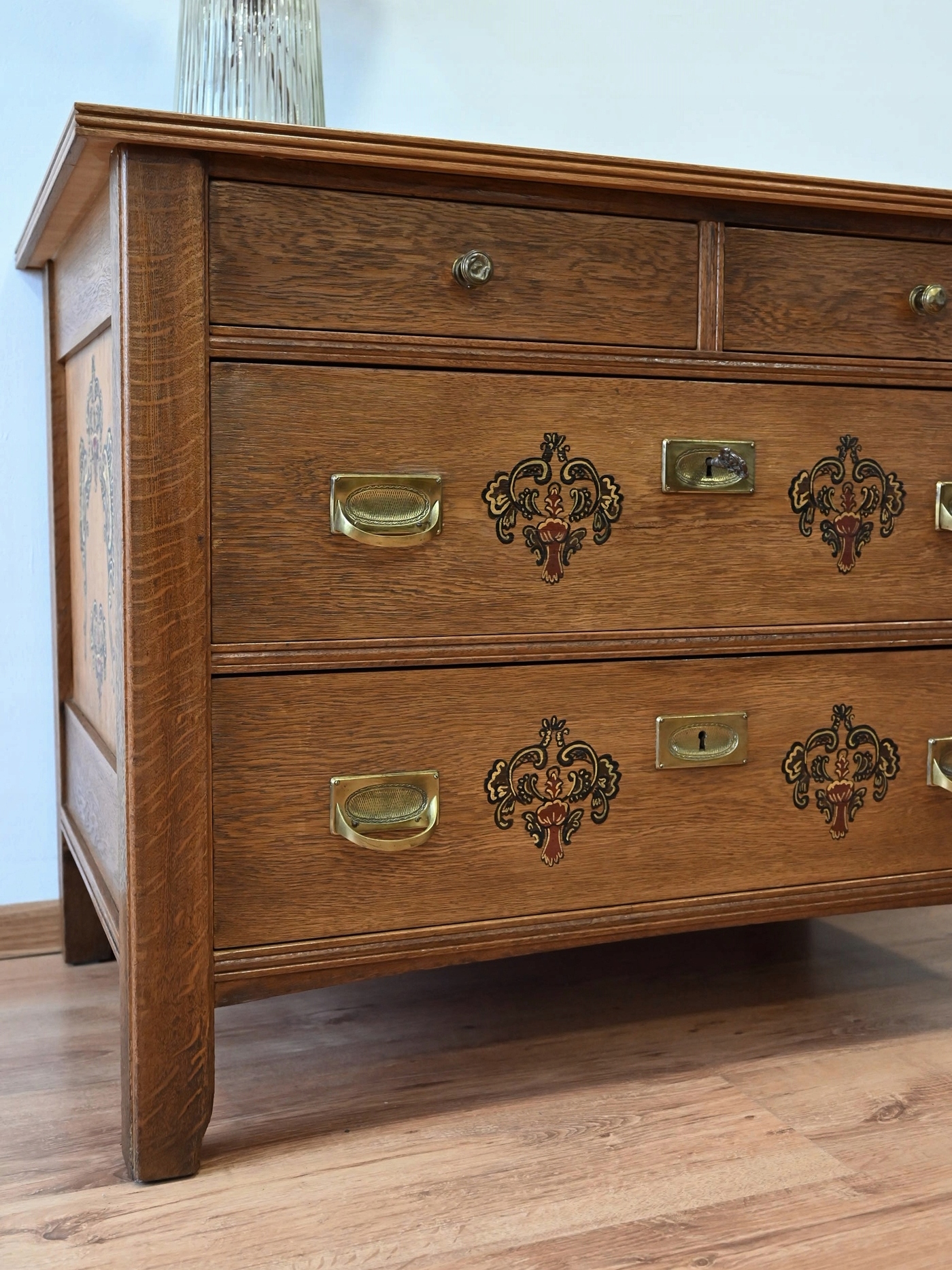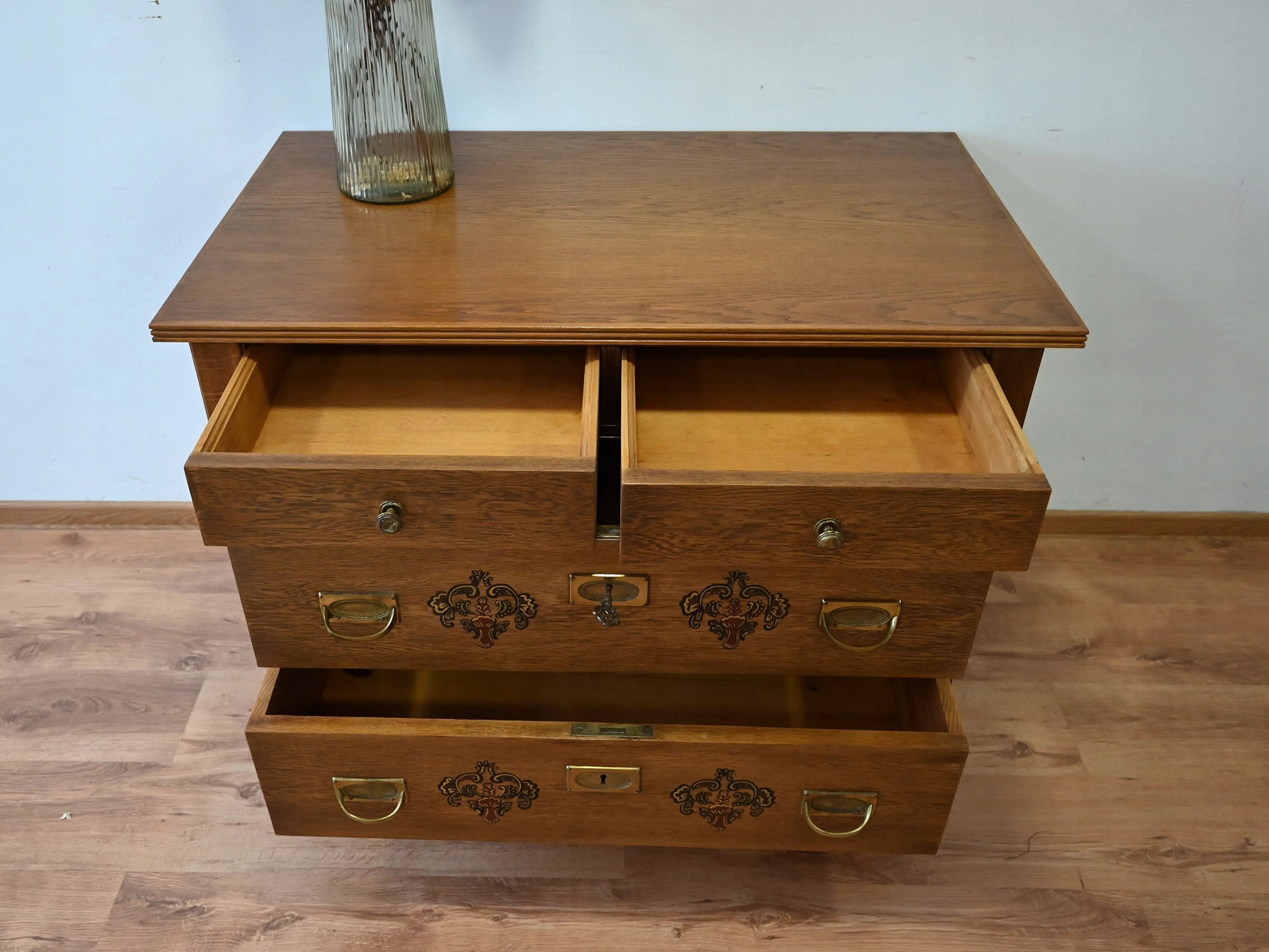 Дуже хороший стан. Меблі готові до використання. Оновлено зовнішні поверхні та інтер’єр меблів. Меблі вже старі, а сліди минулого, які не впливають на їх естетичне сприйняття, є доказом автентичності меблів. Комод можна відразу поставити в квартиру.