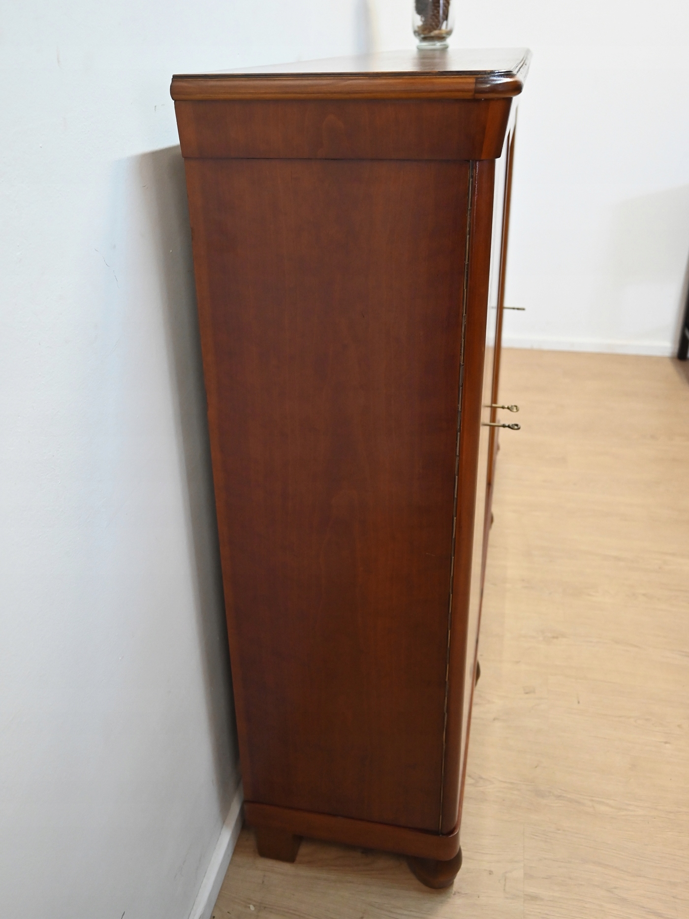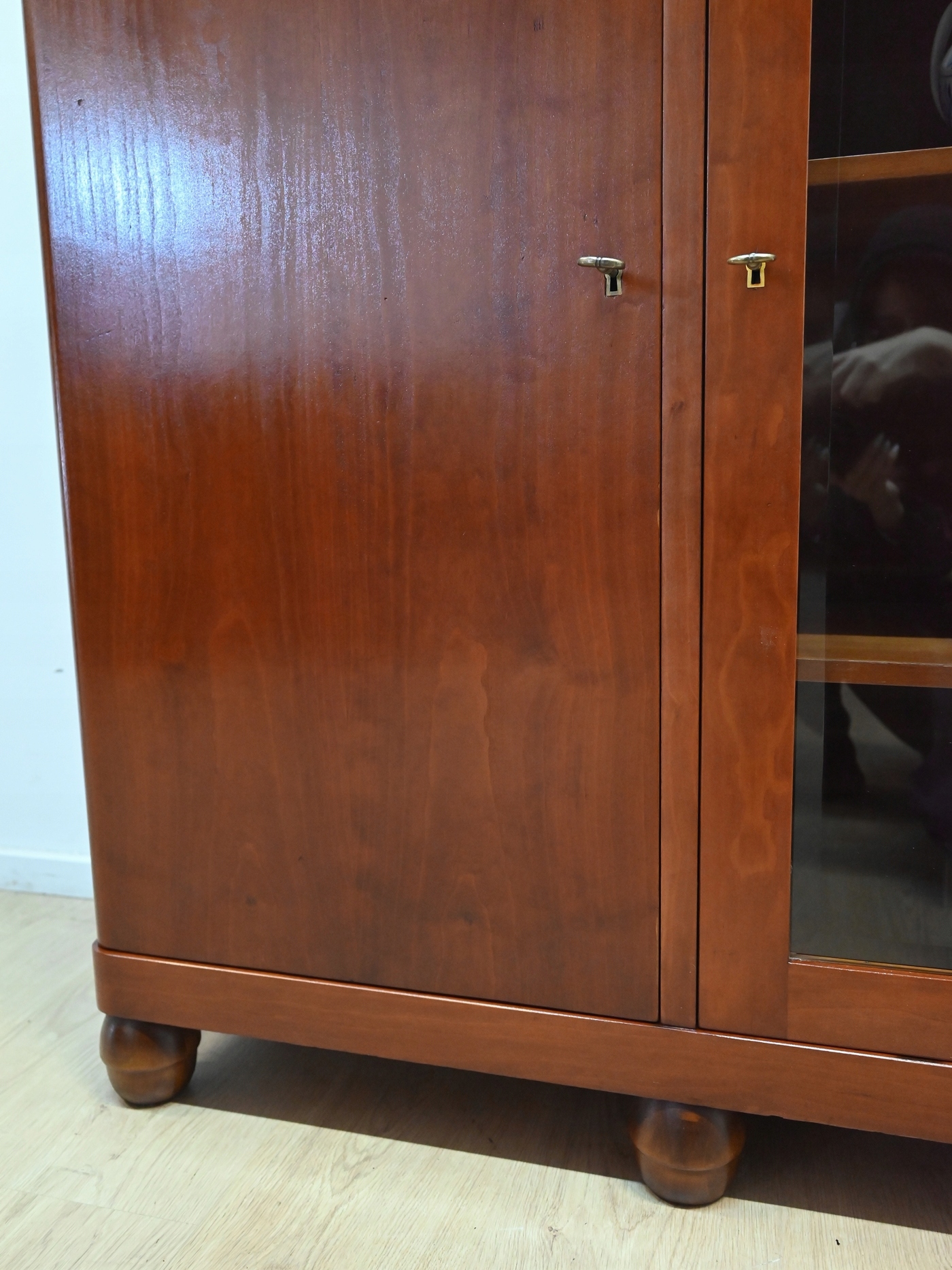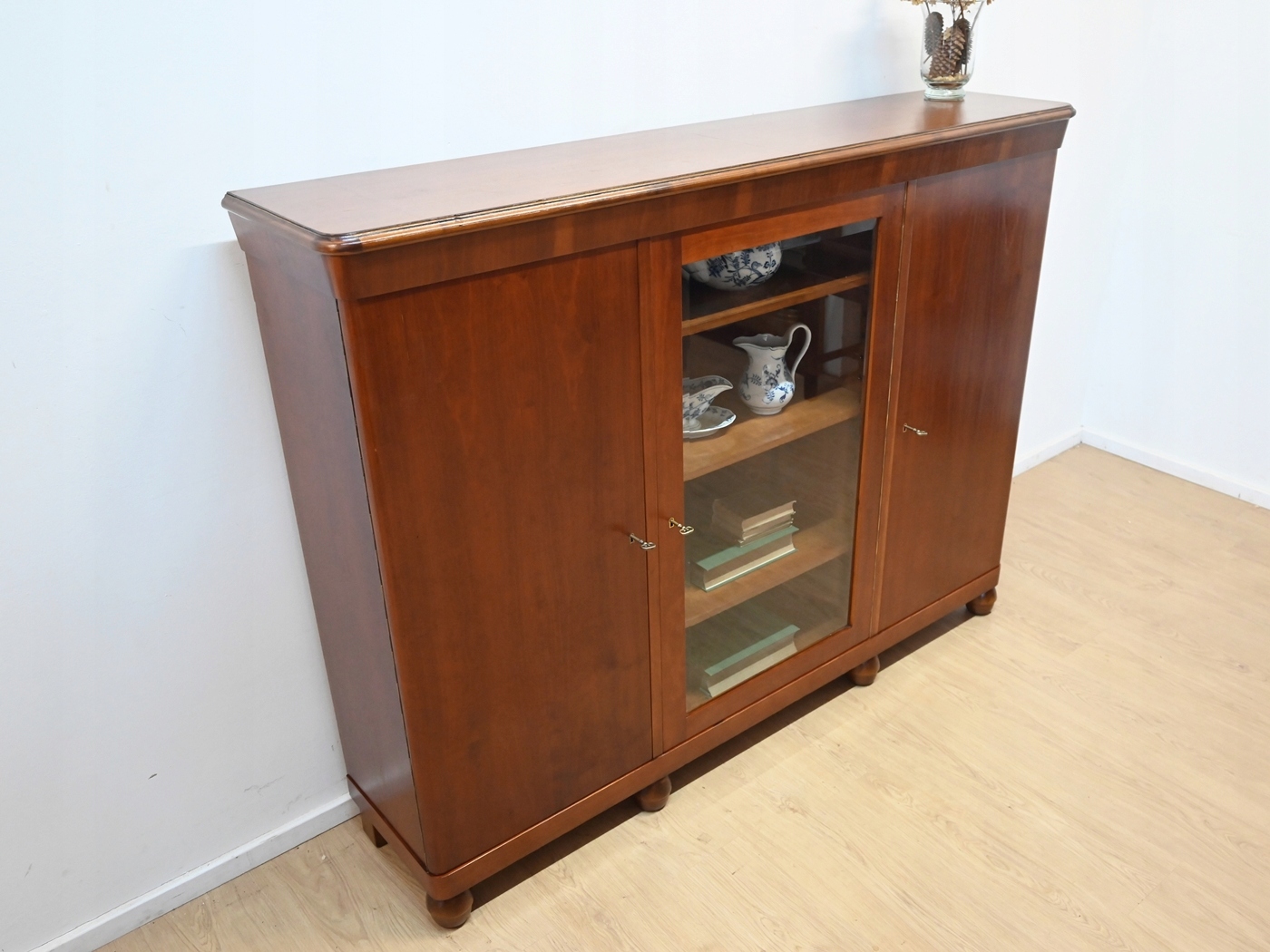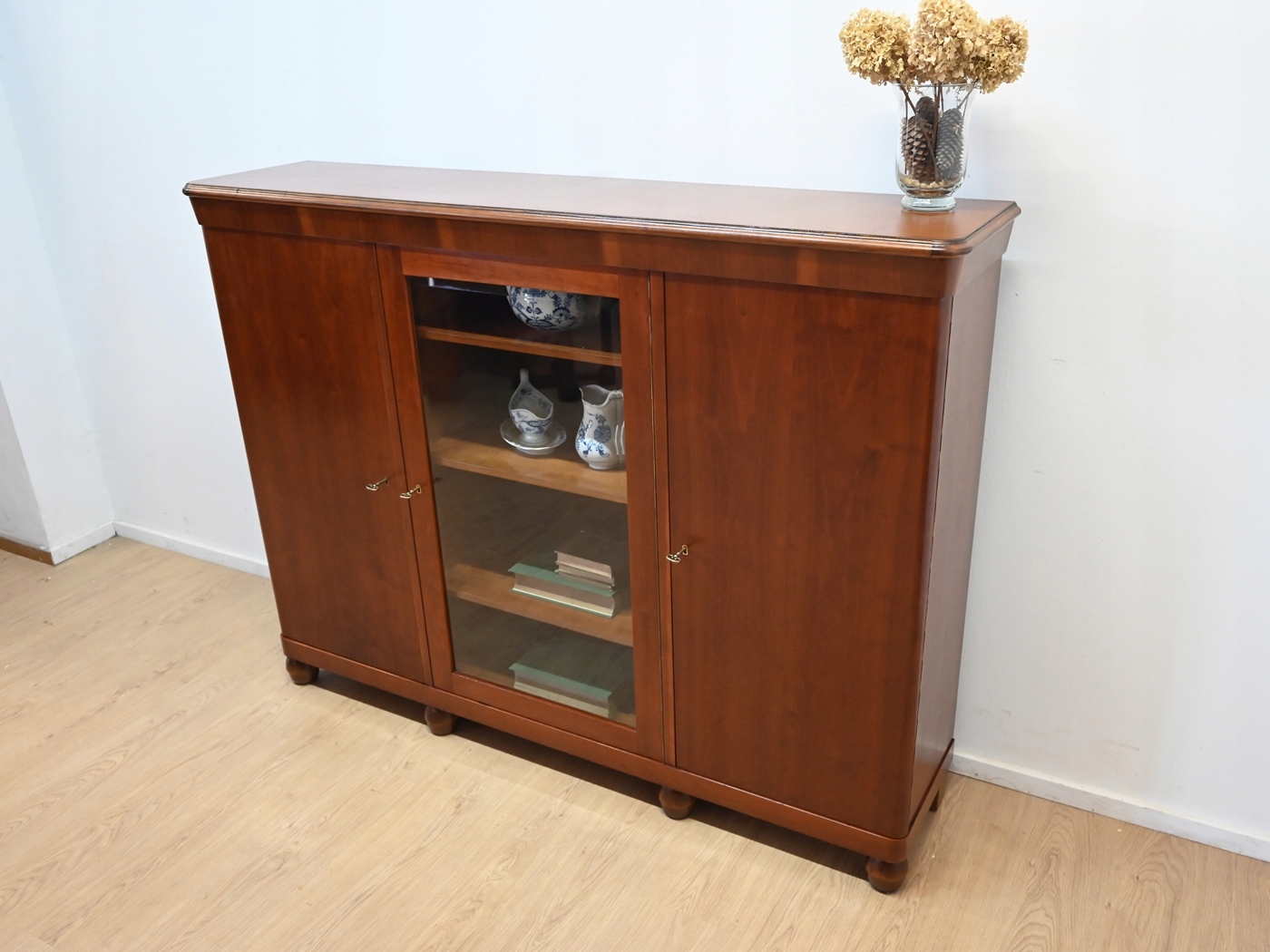 Дуже хороший стан. Меблі готові до використання. Оновлено зовнішні поверхні та інтер’єр меблів. Меблі вже старі, а сліди минулого, які не впливають на їх естетичне сприйняття, є доказом автентичності меблів. Вітрину можна відразу поставити в квартиру.