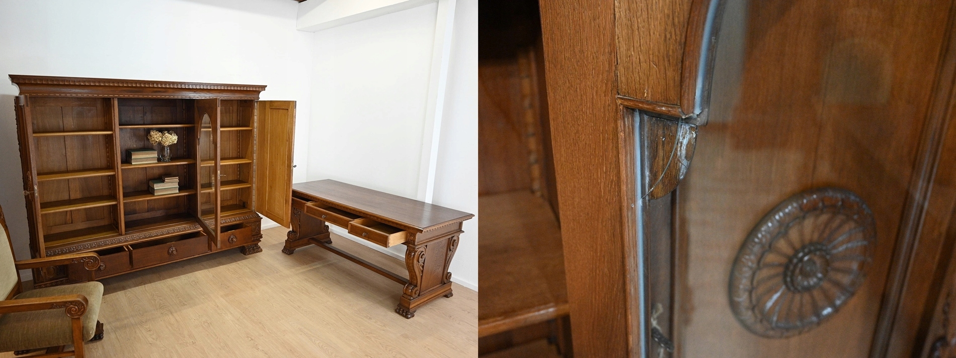 Стан дуже хороший. Меблі готові до використання. Оновлено зовнішні поверхні та внутрішні меблі. Меблі вже старі, а сліди минулого, які не впливають на їх естетичне сприйняття, є доказом автентичності меблів. Офіс можна відразу заселити в квартиру.