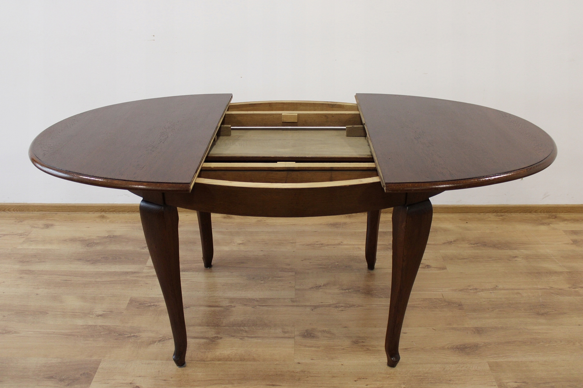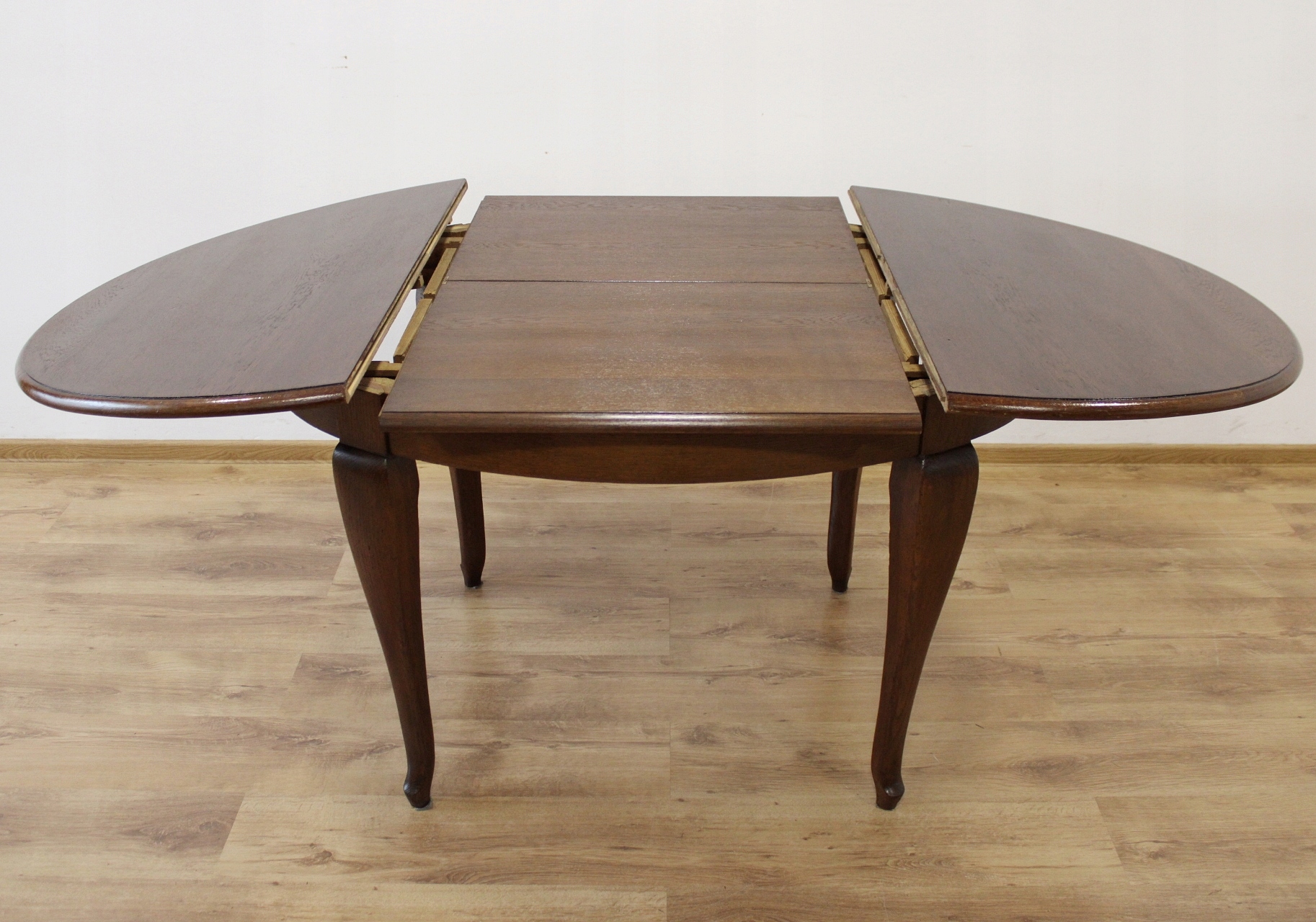 Овальний дубовий стіл, розсувний з висувною додатковою стільницею.